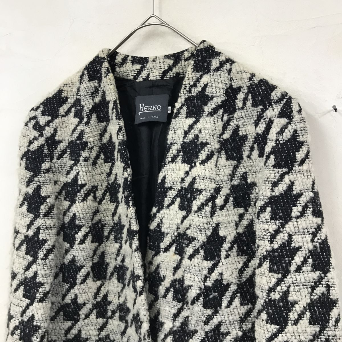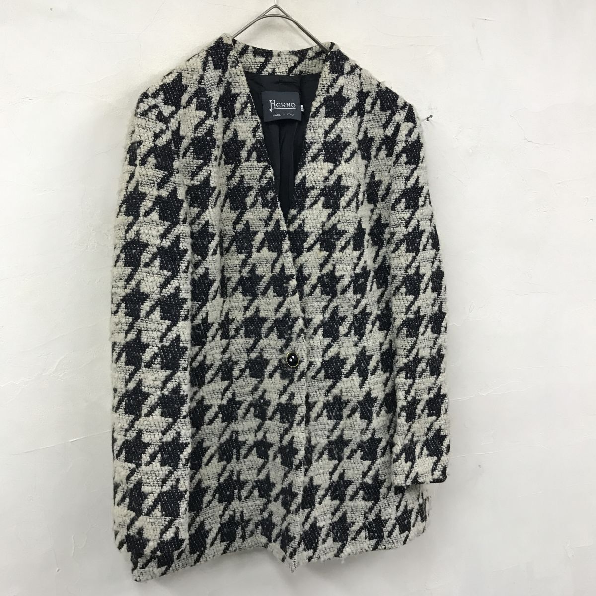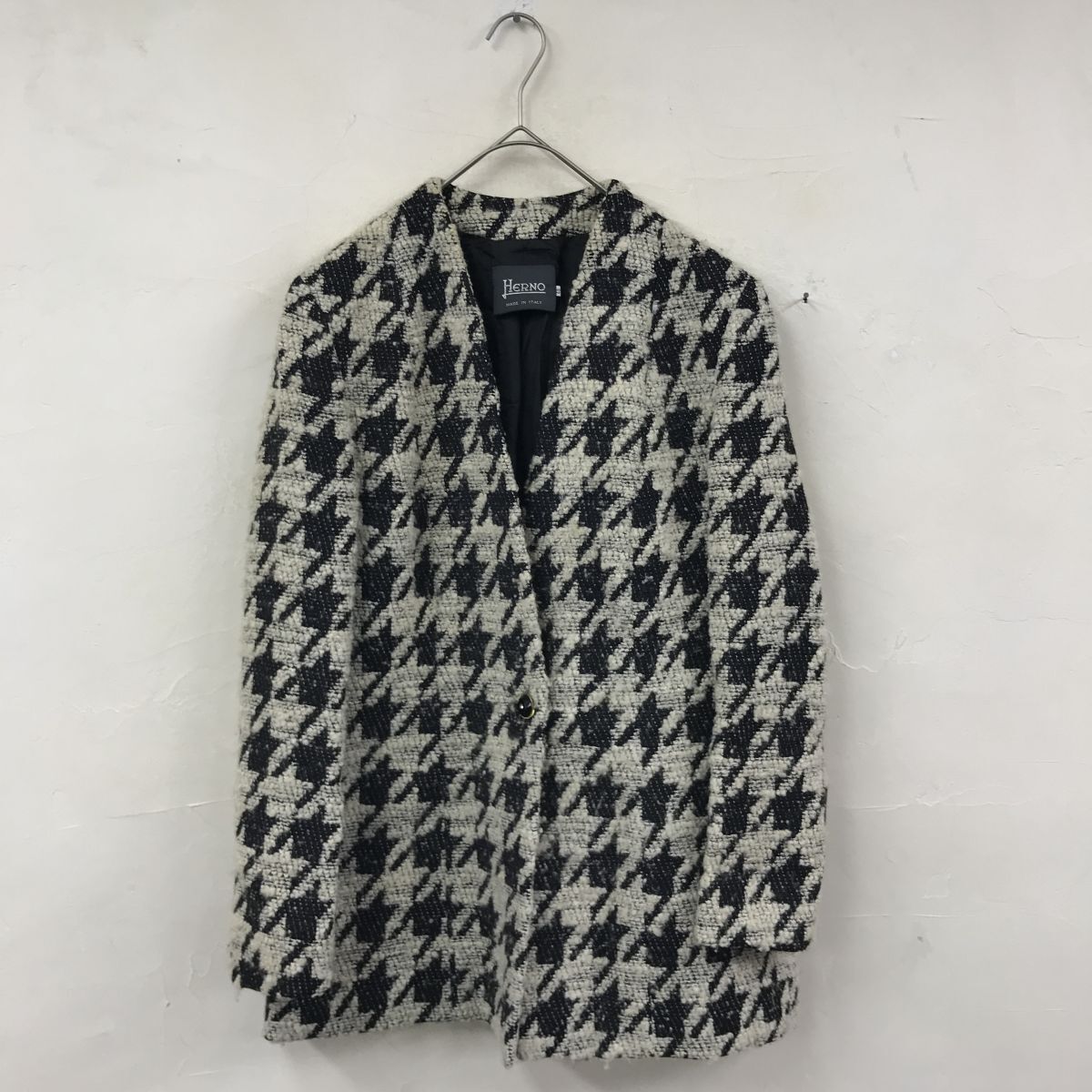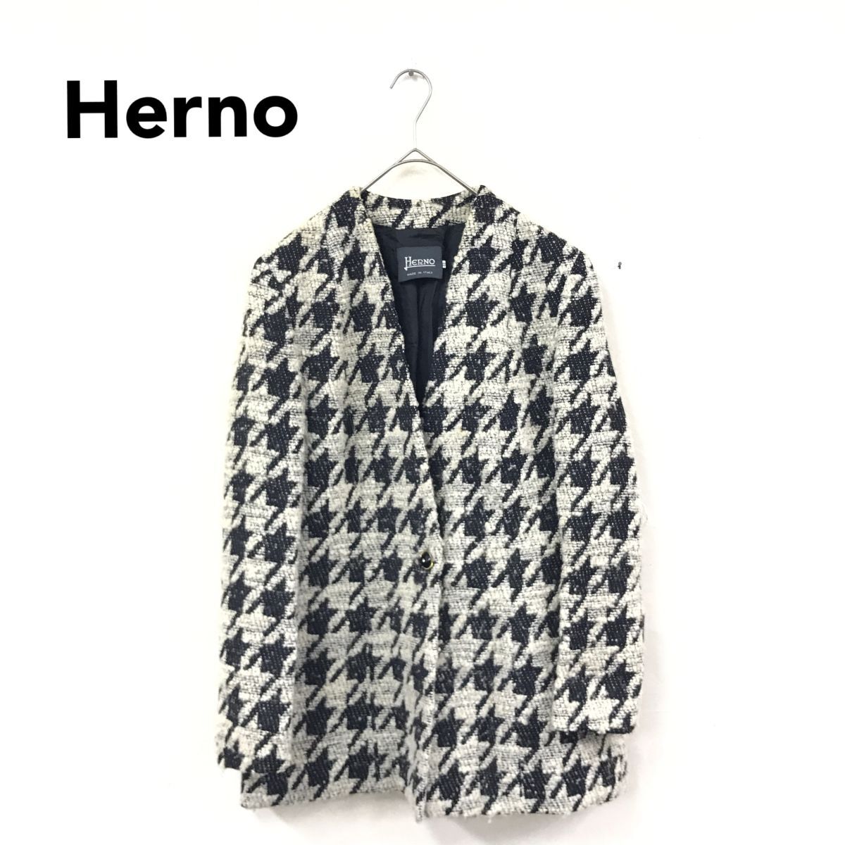 2O-3209-T-N◆イタリア製◆Herno ヘルノ ジャケット ブレザー 千鳥柄 1B ブイネック◆size48 ブラック レディース トップス ウール