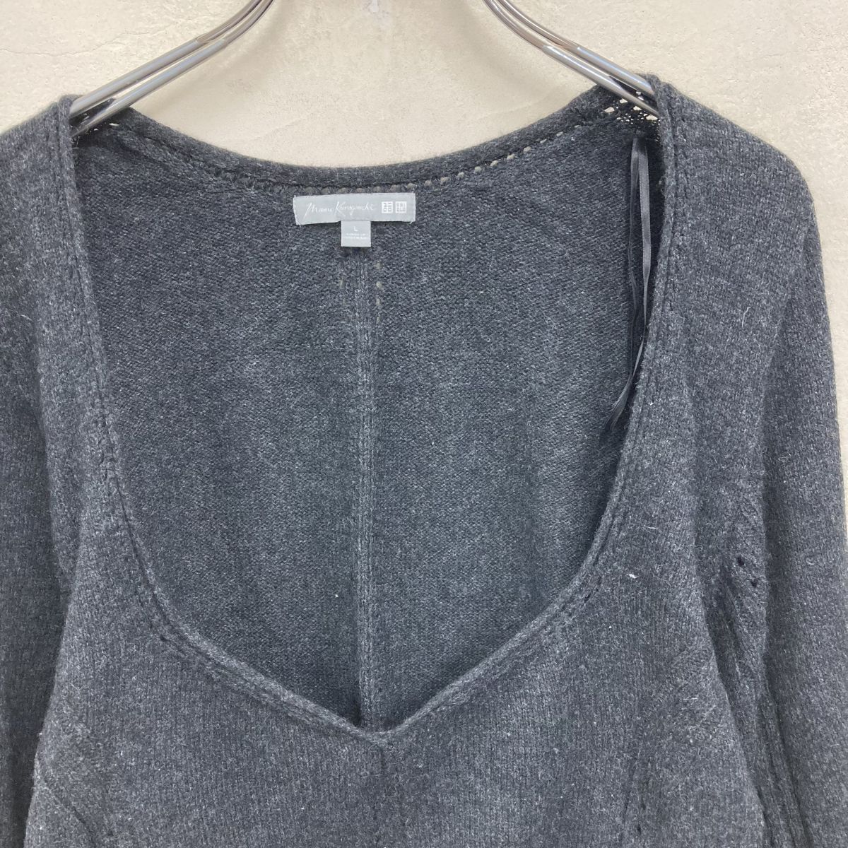 2O3044-W◆UNIQLO mame kurogouchi ユニクロ マメクロゴウチ 長袖 プルオーバーニット 重ね着 カジュアル◆size:L チャコールグレー 毛 他