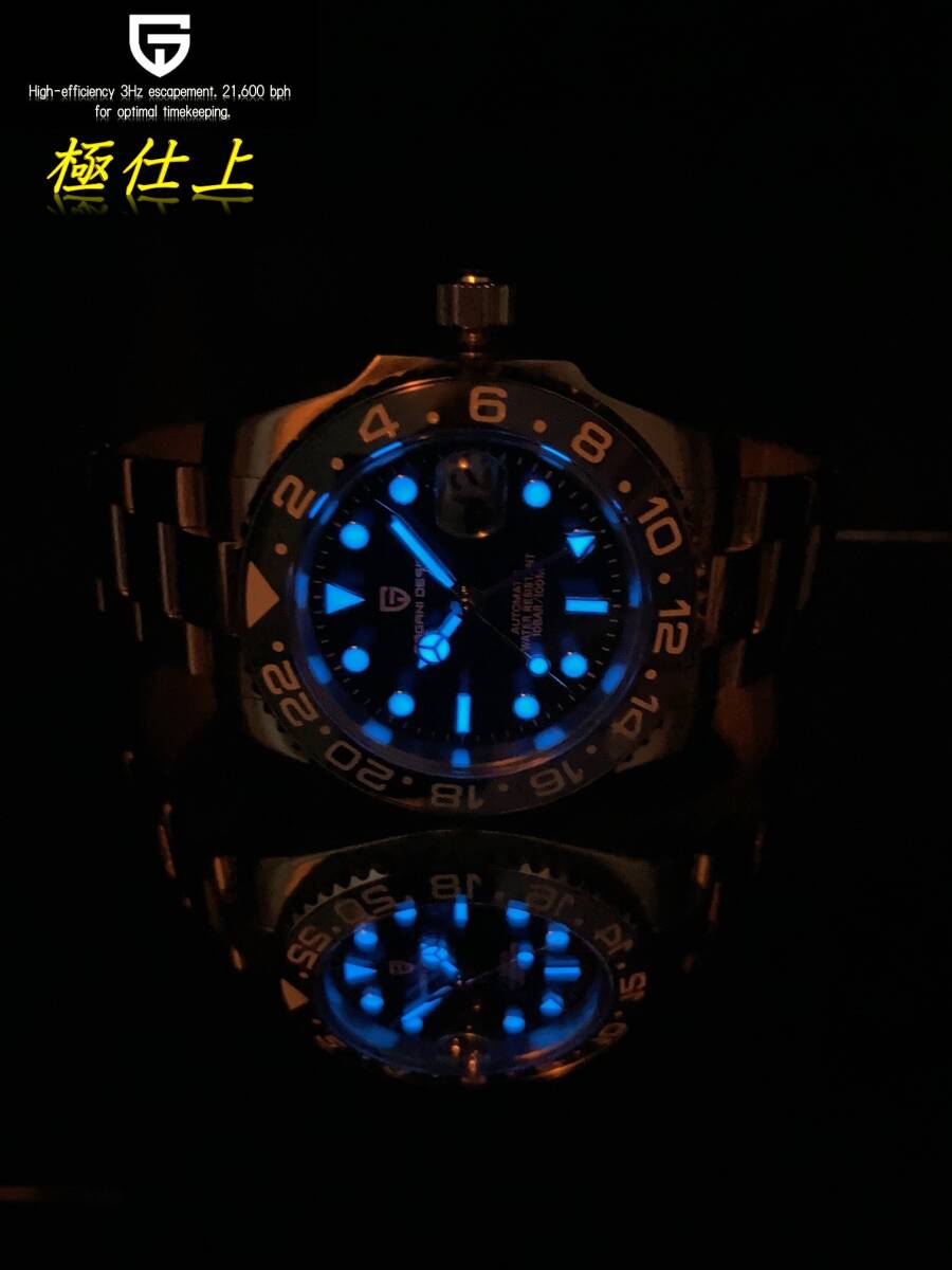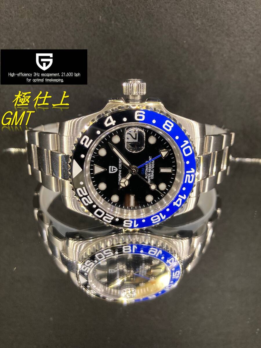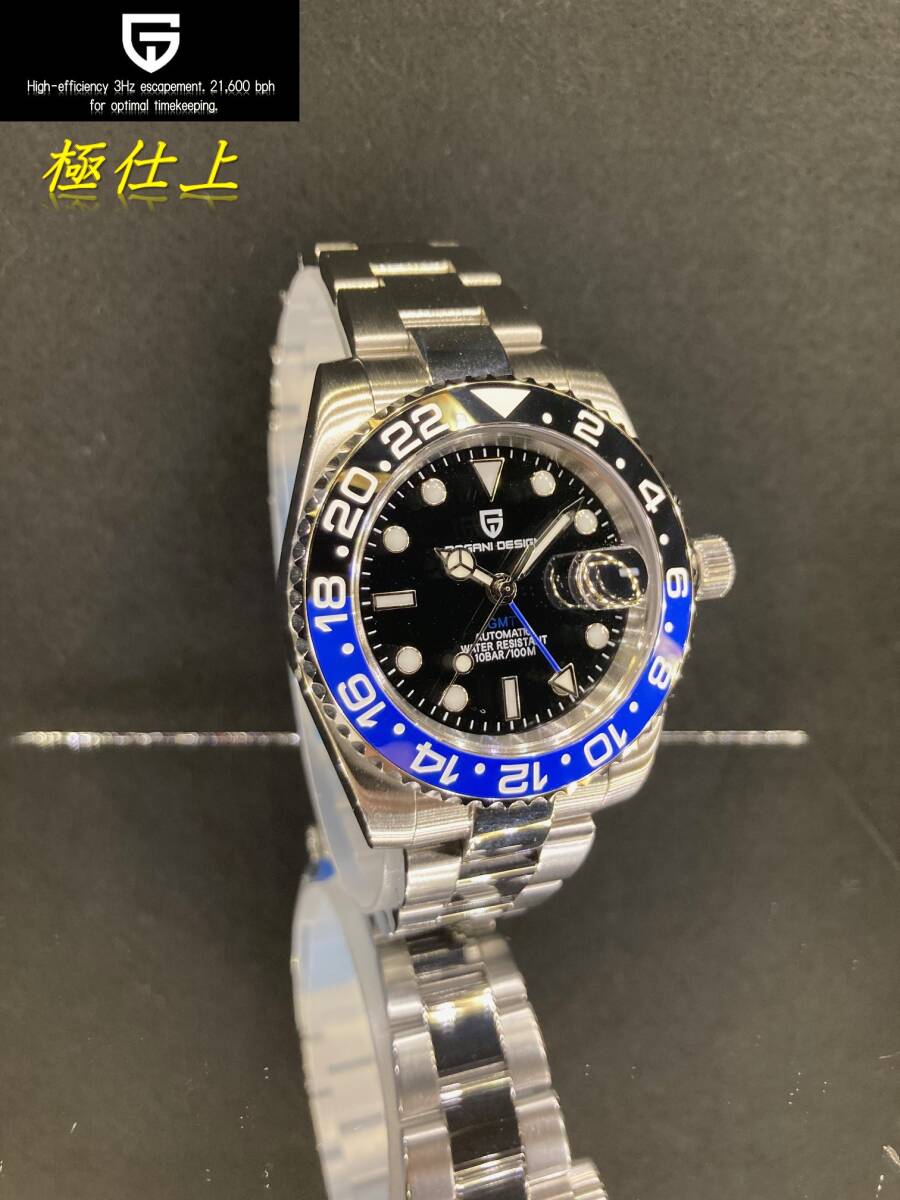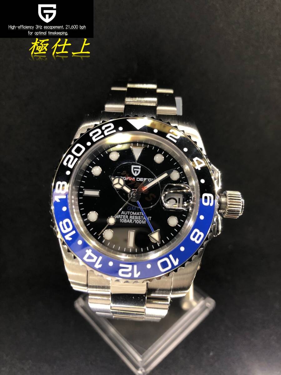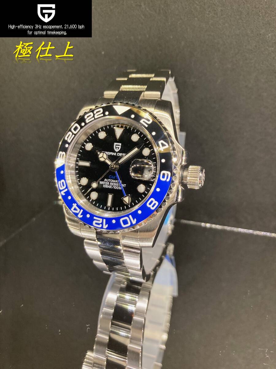 ■極仕上/調整済/10日保証付/新品に極めて近い1回だけ使用USED・中古品(GMTマスターⅡオマージュ)(機械式時計)ブラックブルーベゼル