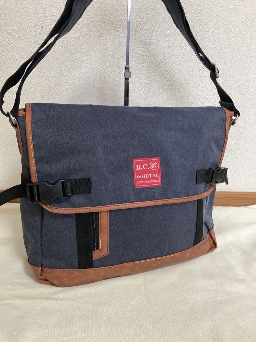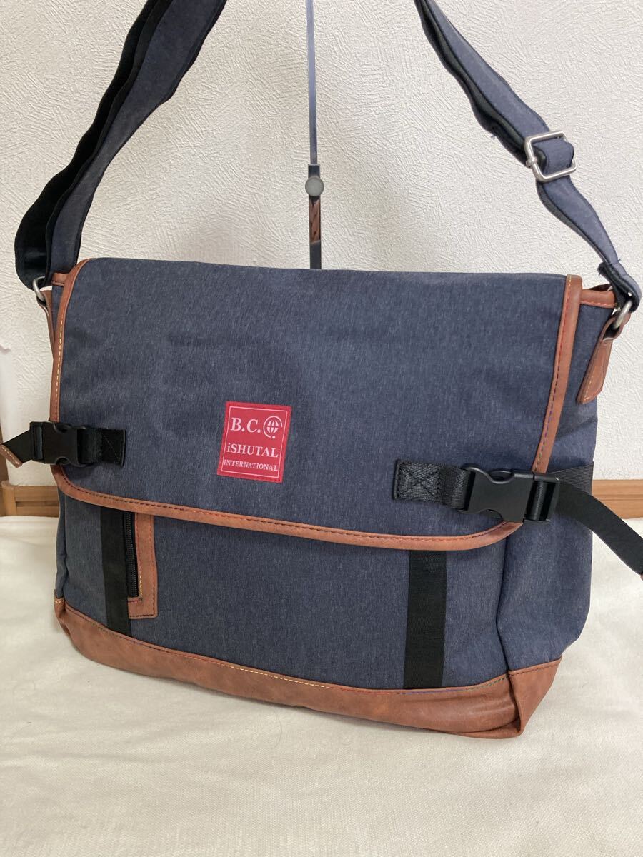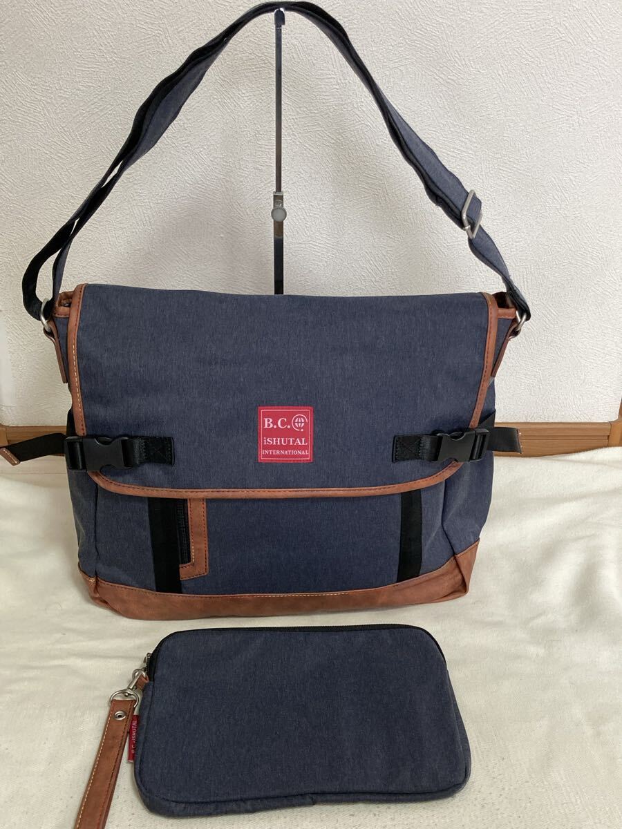 B.C.+Ishutal BCイシュタル デニム風ショルダーバッグ インディゴブルー セカンドバッグ付 使える お洒落 激安 美品です。