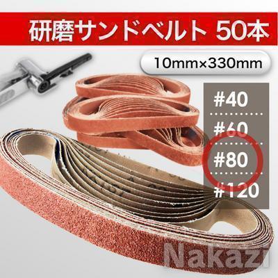 粒度#40・#60・#80・#120 それぞれ幅10㎜×長さ330㎜ 業務用研磨サンドベルト50本セットです。