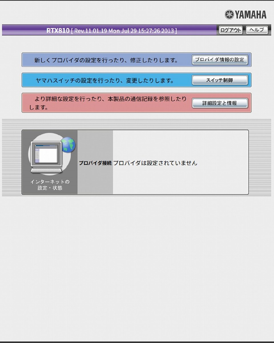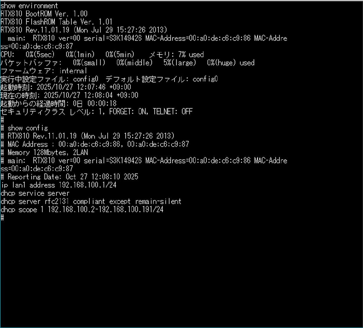 設定を初期化し、 LAN、WAN の各ポートの接続と LED の点灯を確認しました。