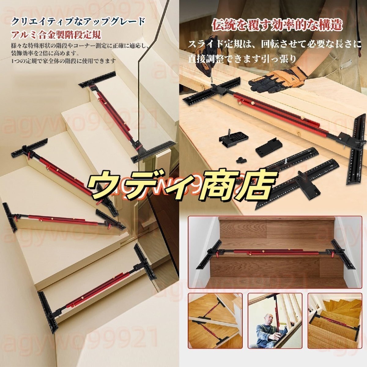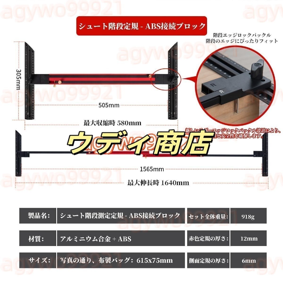 階段測定ツール アルミ合金製 階段踏面テンプレートツール 角度調整・長さ伸縮可能 滑槽式スライド設計 Mm/inch両用スケール付き ABS接続部品付き 精密階段定規 工具不要 設置簡単 580mm?1640mm対応 軽量で頑丈 高精度測定 持ち運び便利 家庭用大工ツール 棚施工