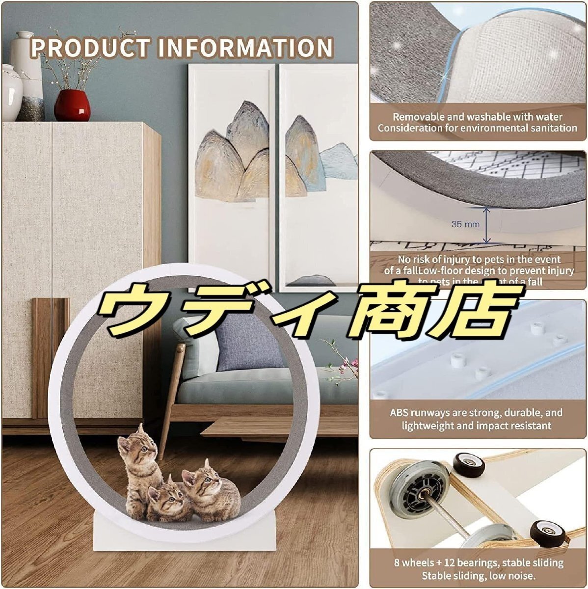 ●【ペットの娯楽を促進】猫の車輪は猫の曲げたり伸ばしたりする能力を形作り、ペットとのアクティブなライフスタイルを楽しむことができます。 猫のエクササイズ ホイールは、家具の損傷の可能性を減らしながら、猫に何時間もの娯楽と運動の機会を提供します。 ●【低騒音】1