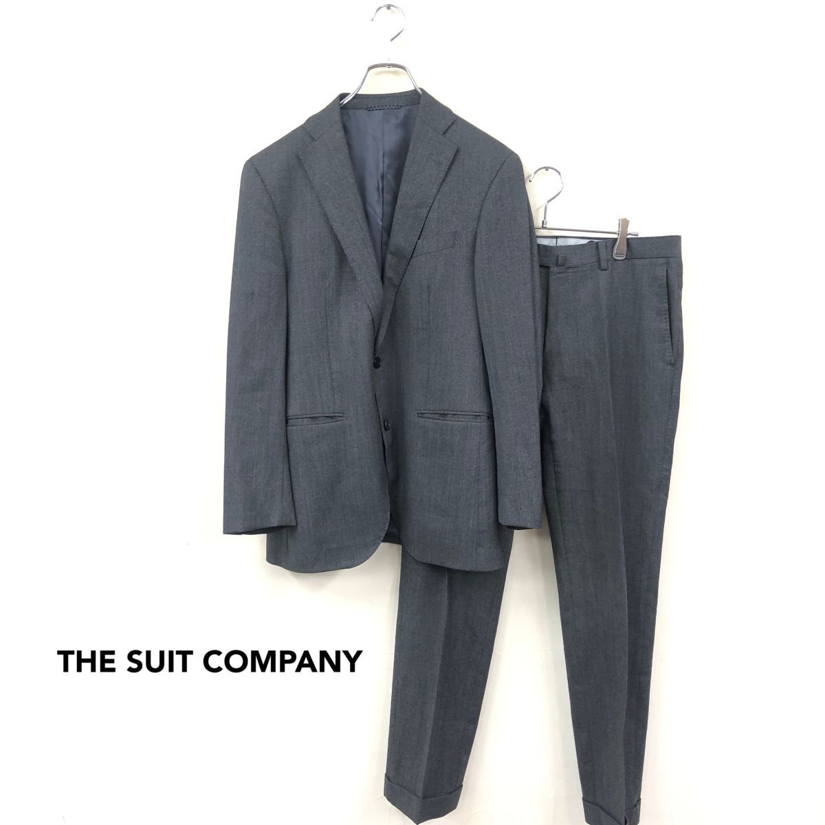 2O3305-O-S◆THE SUIT COMPANY ザ スーツカンパニー スーツセットアップ 総裏 シングル スラックス◆sizeL グレー 毛
