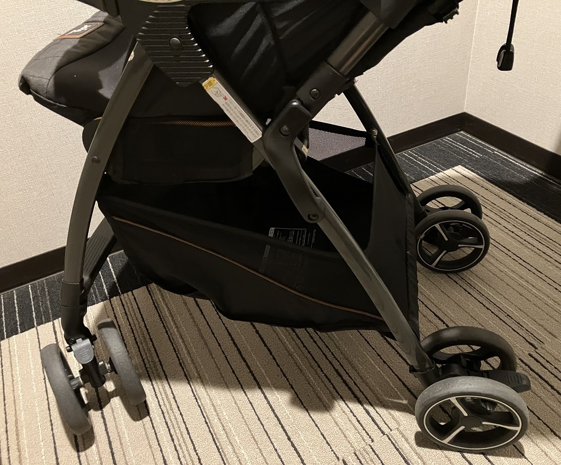 フットリクライニング:2段階、収納かごサイズ:W32×D33×H10~16cm、タイヤ直径:14cm(前後とも)、タイヤ幅:1つ2.5cm、全体10cm(前後とも)、サスペンション付(前後とも)、シートサスペンション付、レインカバー付、UPF50+