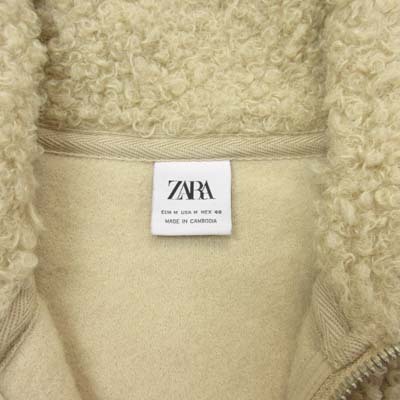 ザラ ZARA トレーナー ハーフジップ ループヤーン M ベージュ レディース