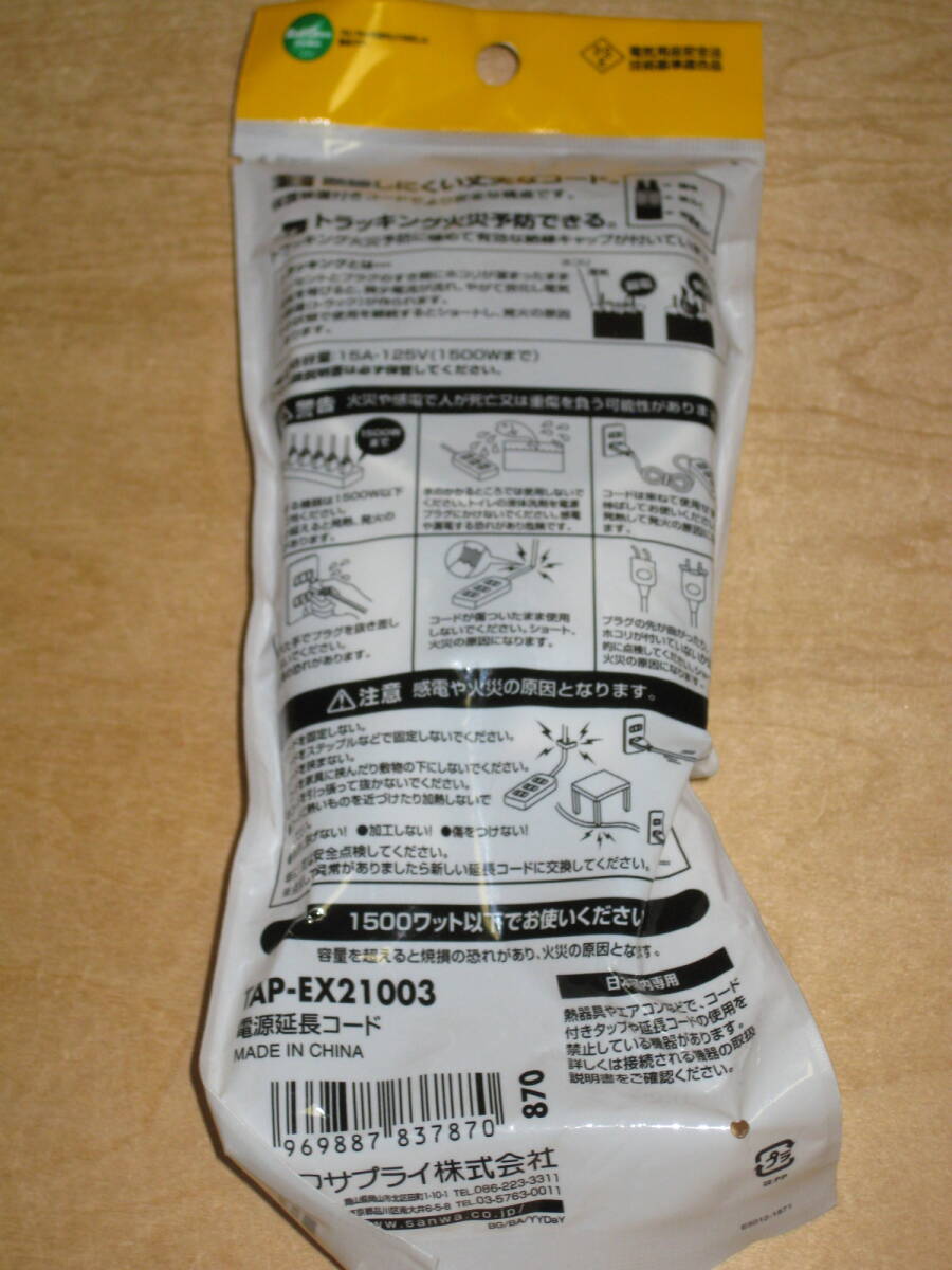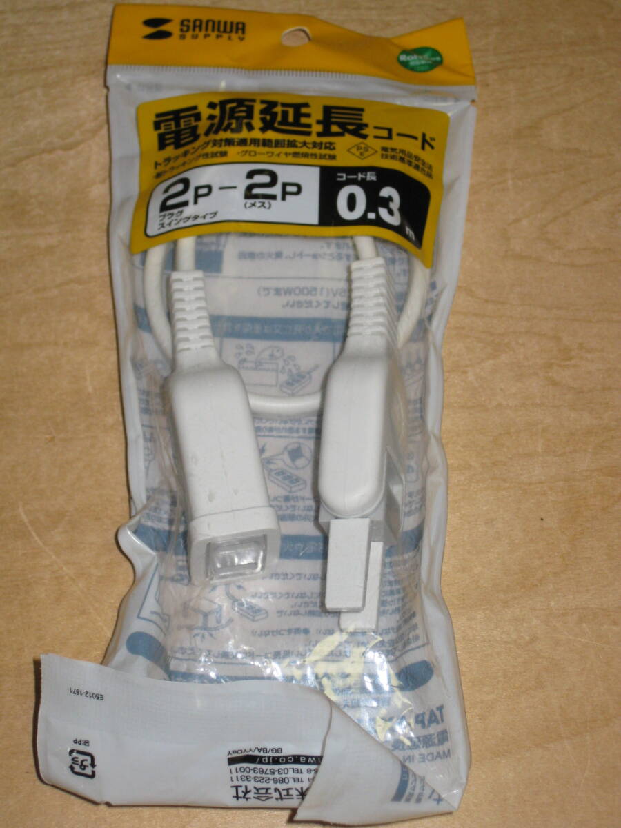 サンワサプライ 電源延長コード TAP-EX21003 [0.3m] ホワイト スイングタイプ 耐トラッキング火災予防 送¥185~