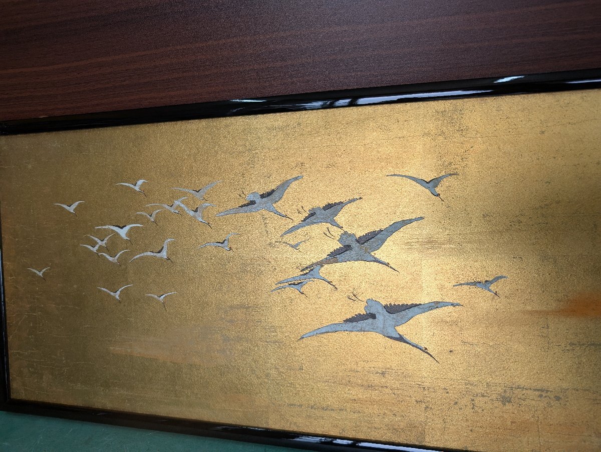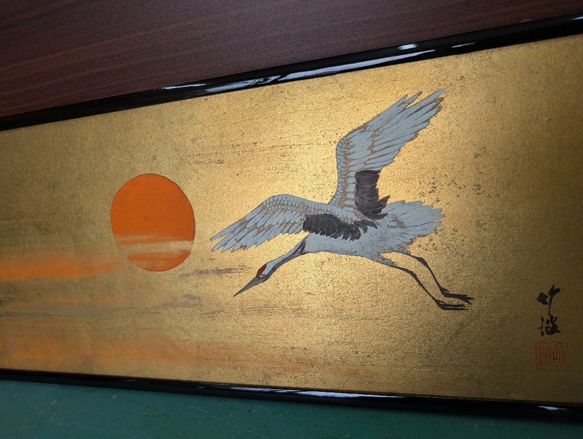壁掛け 日本画 鶴 金 竹波 インテリア 骨董