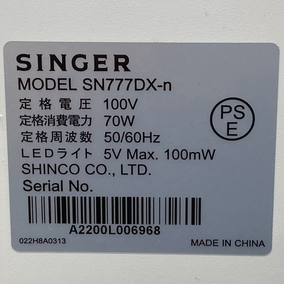 【10T58】1円スタート SINGER / SN777DX-n 家庭ミシン 手芸 裁縫 ハンドクラフト コンピューターミシン 通電確認済み