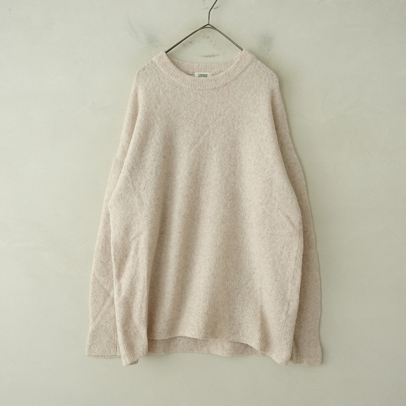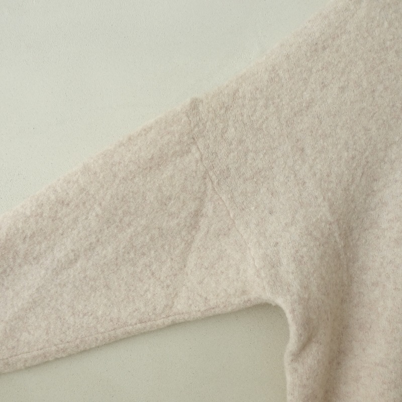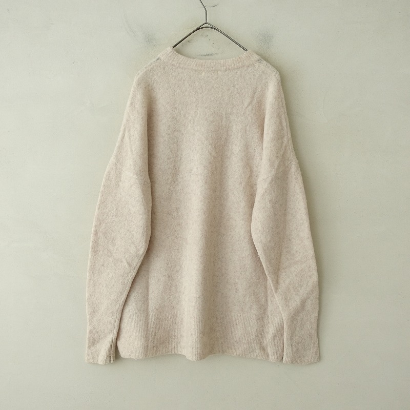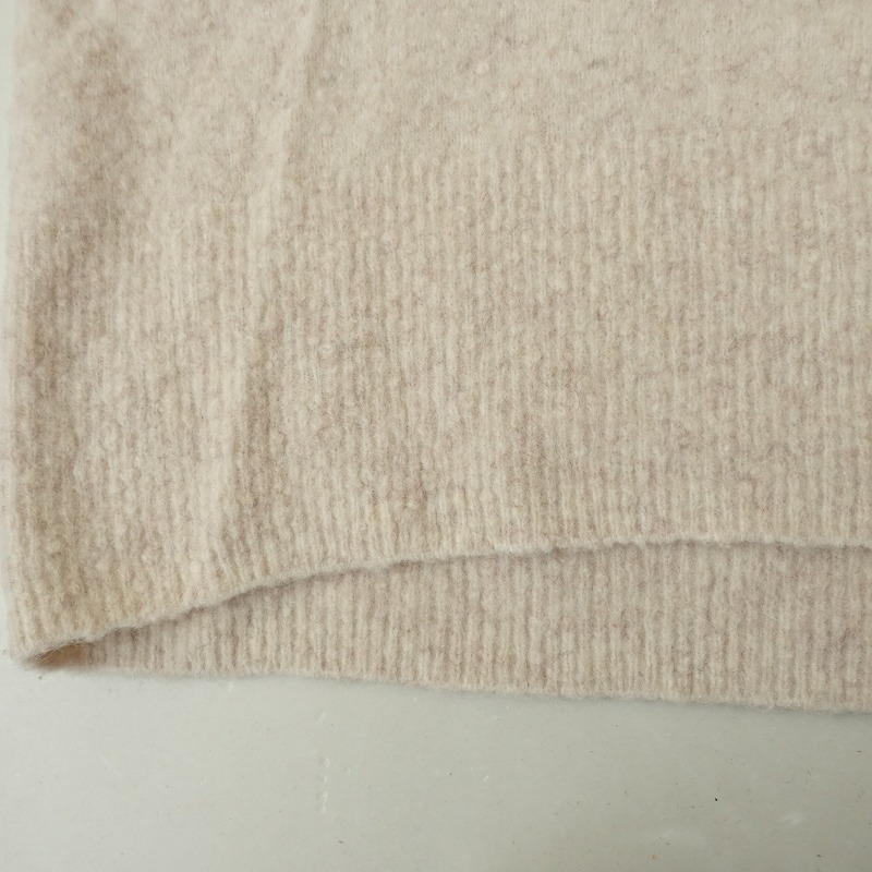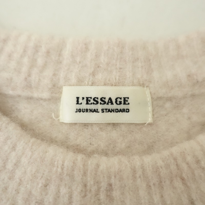 | JOURNAL STANDARD Lessageのウール混ニットプルオーバーです。カラーはライトベージュで、縮絨されたような中厚手の起毛ニット地で仕立てられております。定価(メーカー希望小売価格)28,600円 税込みの商品です。 |