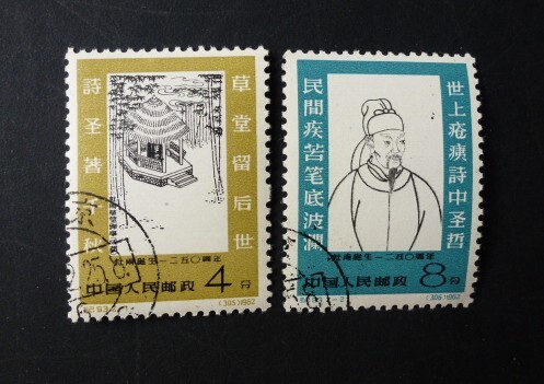 新中国     杜甫誕生  2種     画像の通り   使用済   美品 。