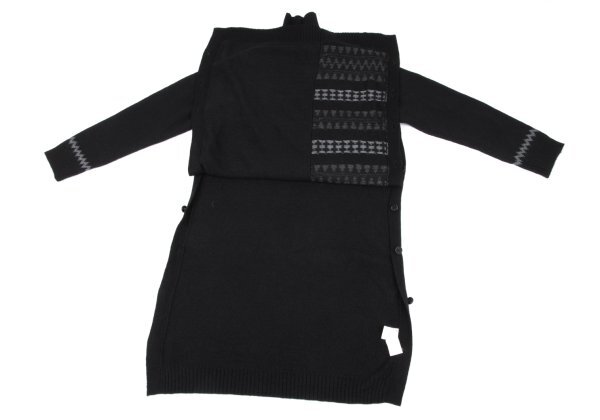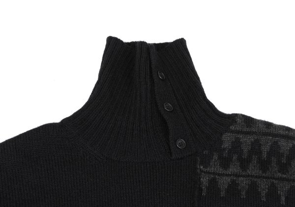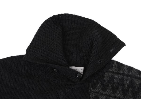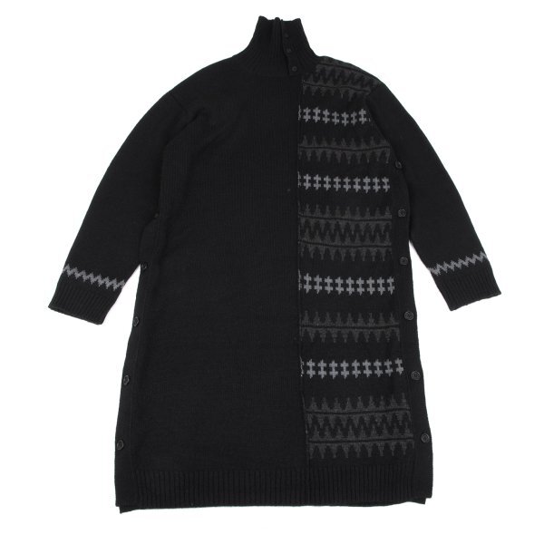 | ヨウジヤマモトプールオムYohji Yamamoto POUR HOMME ネイティブ切替サイドボタンロングニットセーター 黒グレー3 |