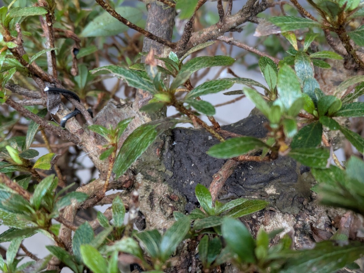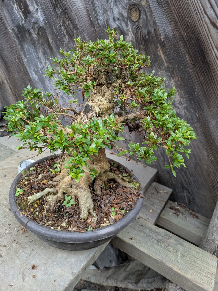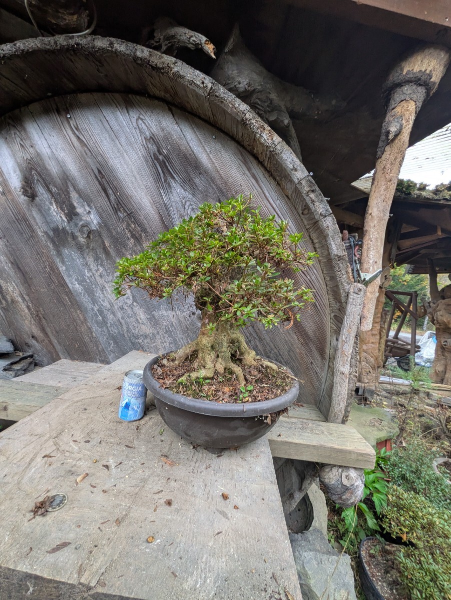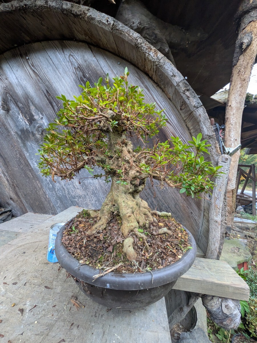 およそは40x40x48cmの枠に入るサイズ。根本付近からの高さは35cmくらい。10年くらい前に 現在の頭下の主幹を大きく切り 太幹で小さく根張りのコンパクトな木にしてます。その切ったヶ所も肉乗りしたり擁護材を出したりしてます。枝も主幹近くにしてきたので 小枝が枯れたりしてる部分もあります。プラ鉢は長年で老朽化してます。発送梱包の際に痛むヶ所が有るかもしれません。佐川急便にて発送する事も有ります。