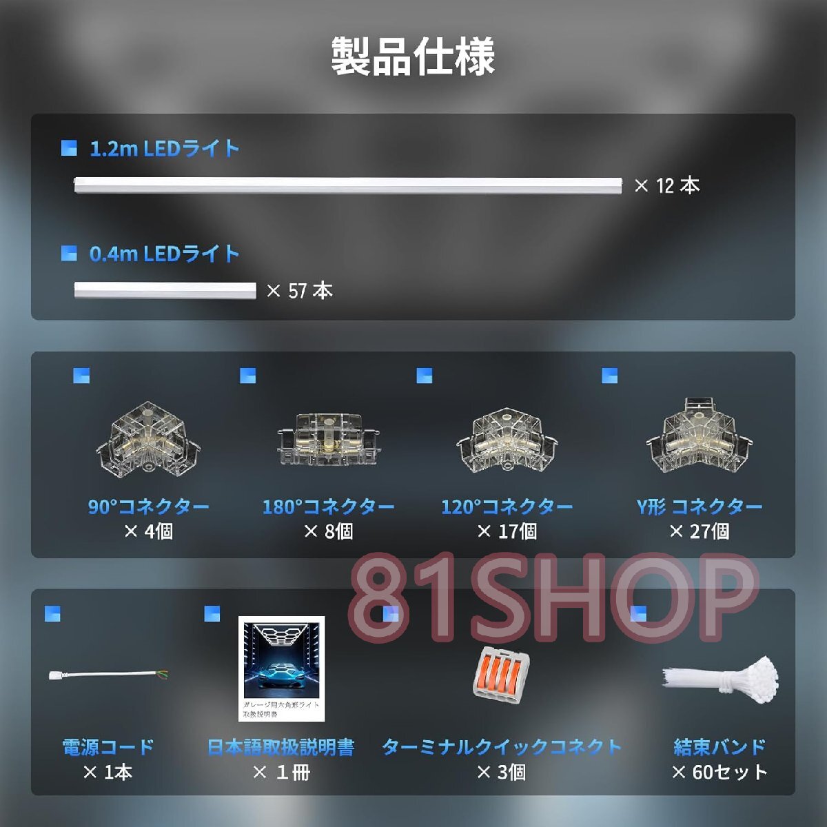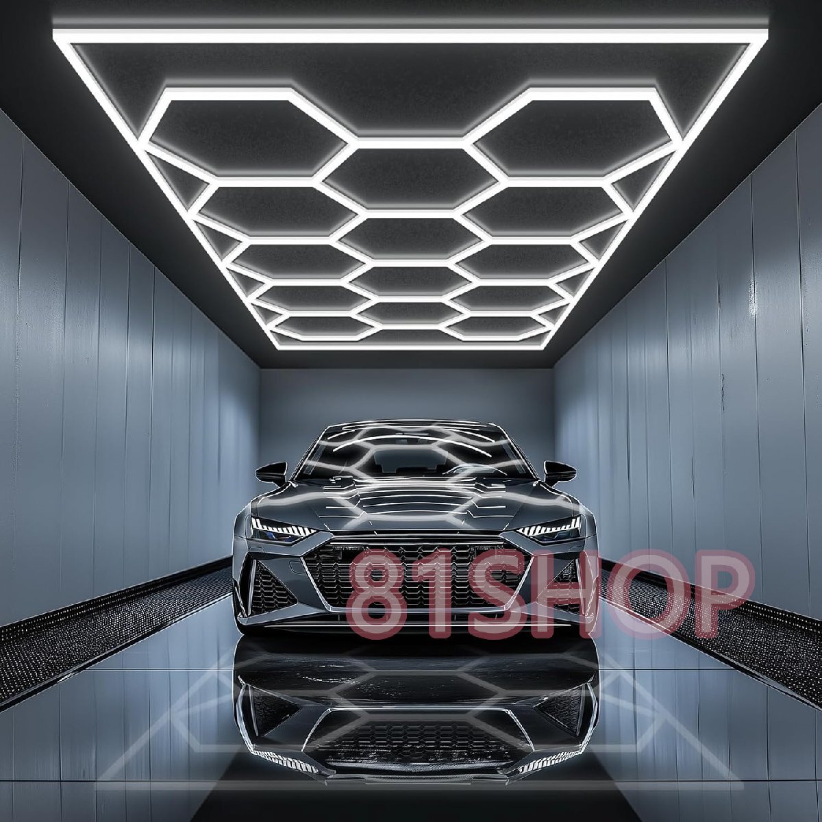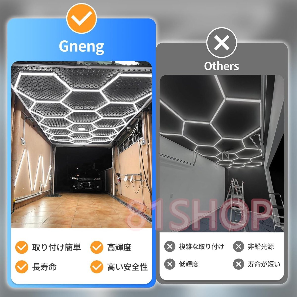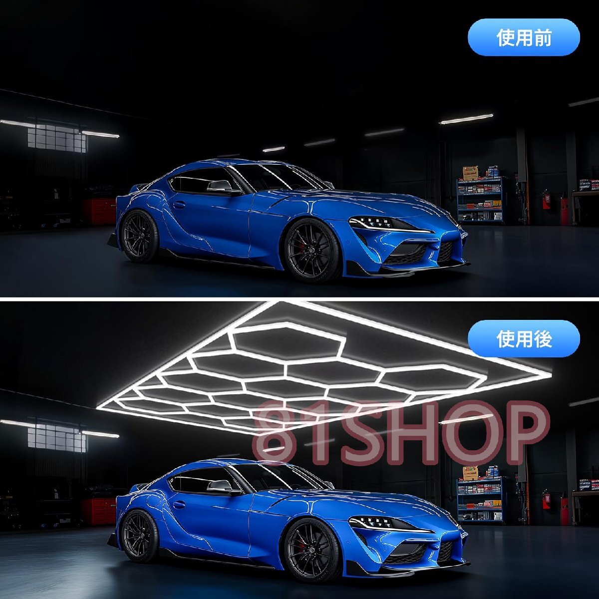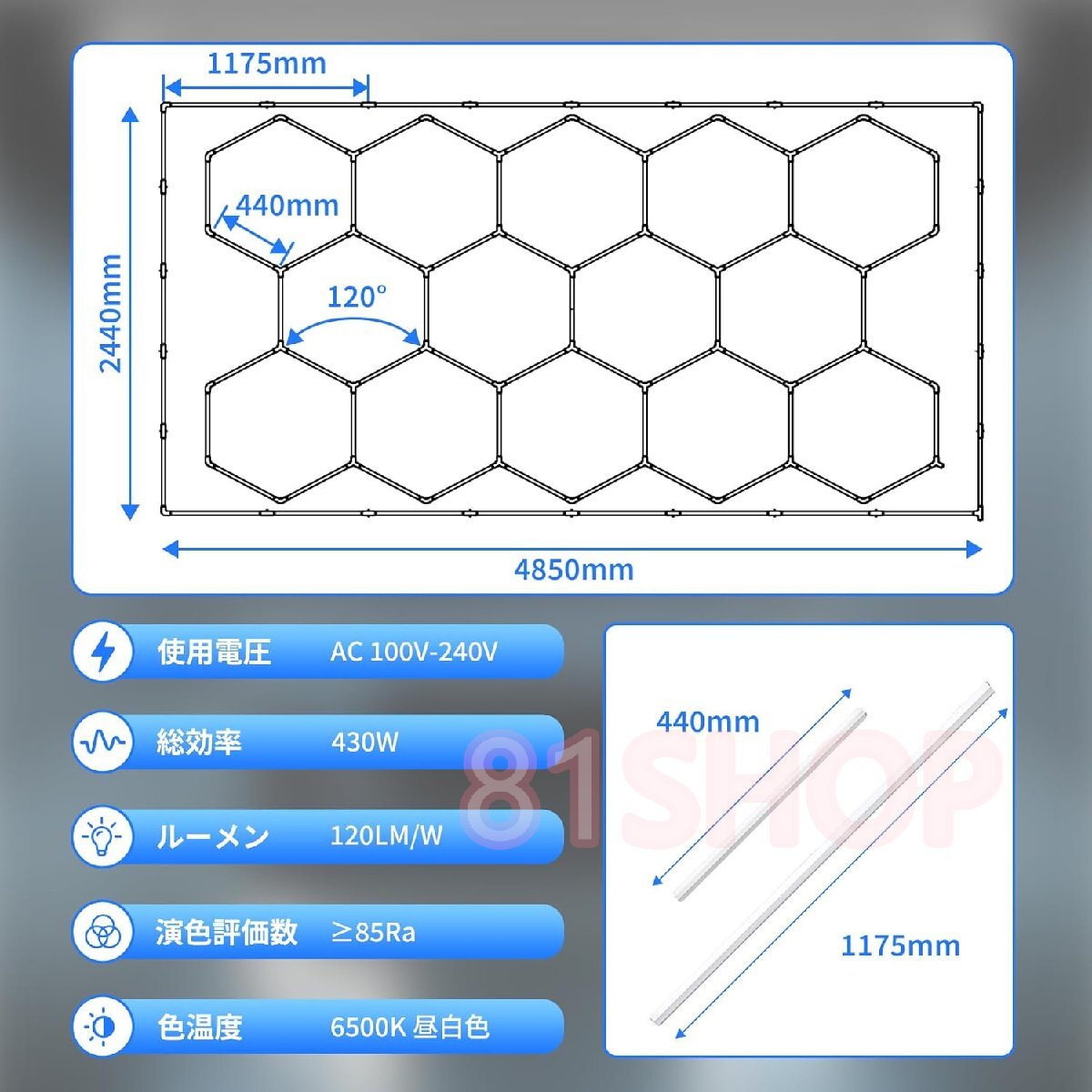 「81SHOP」2台 LEDガレージライト六角形ハニカムライト 430W 51600LM 6500K 高輝度 DIYセット14個ヘキサゴンライト ガレージ照明485*244cm