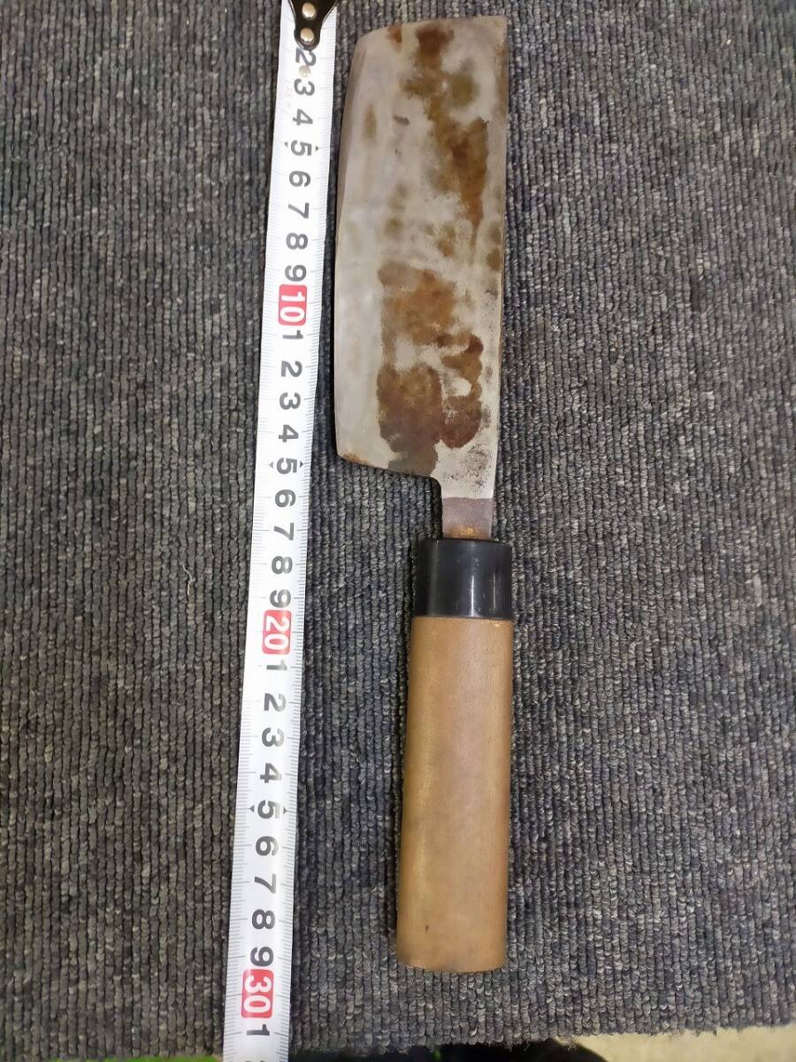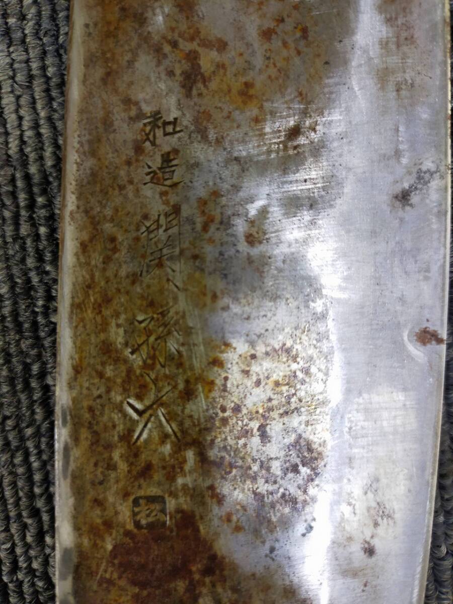 経年によるサビや変色がありますが、刃欠けは見られず研ぎ直しで再使用できます。