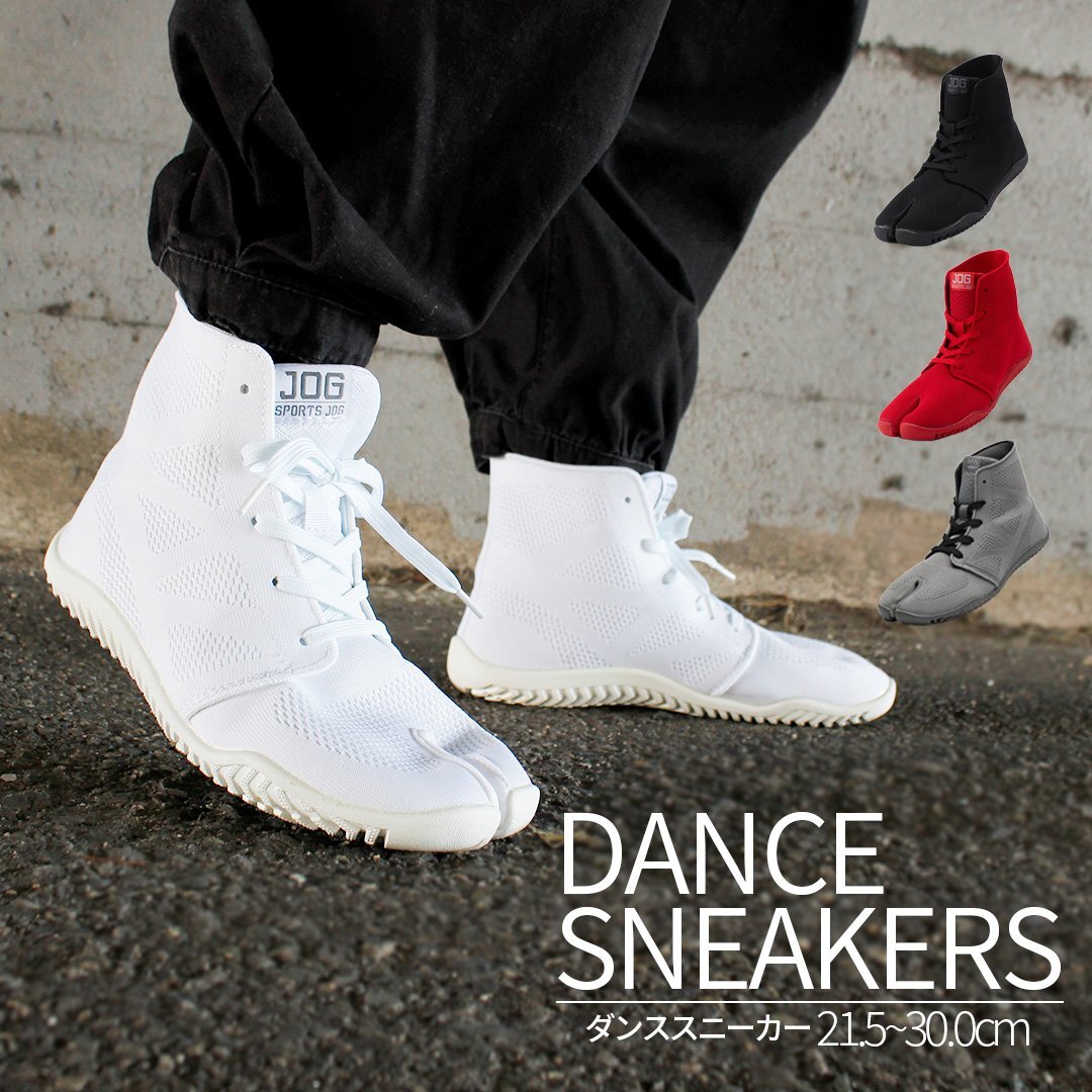 3~4日以内発送 ダンススニーカー ( ホワイト 30cm ) ダンスシューズ 白 黒 赤 グレー 祭り よさこい スポーツジョグ2 足袋シューズ 足袋