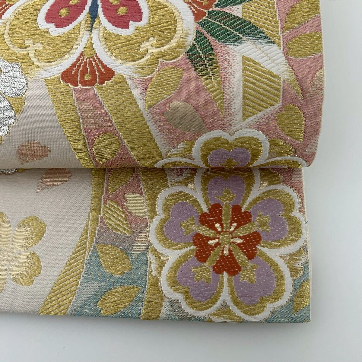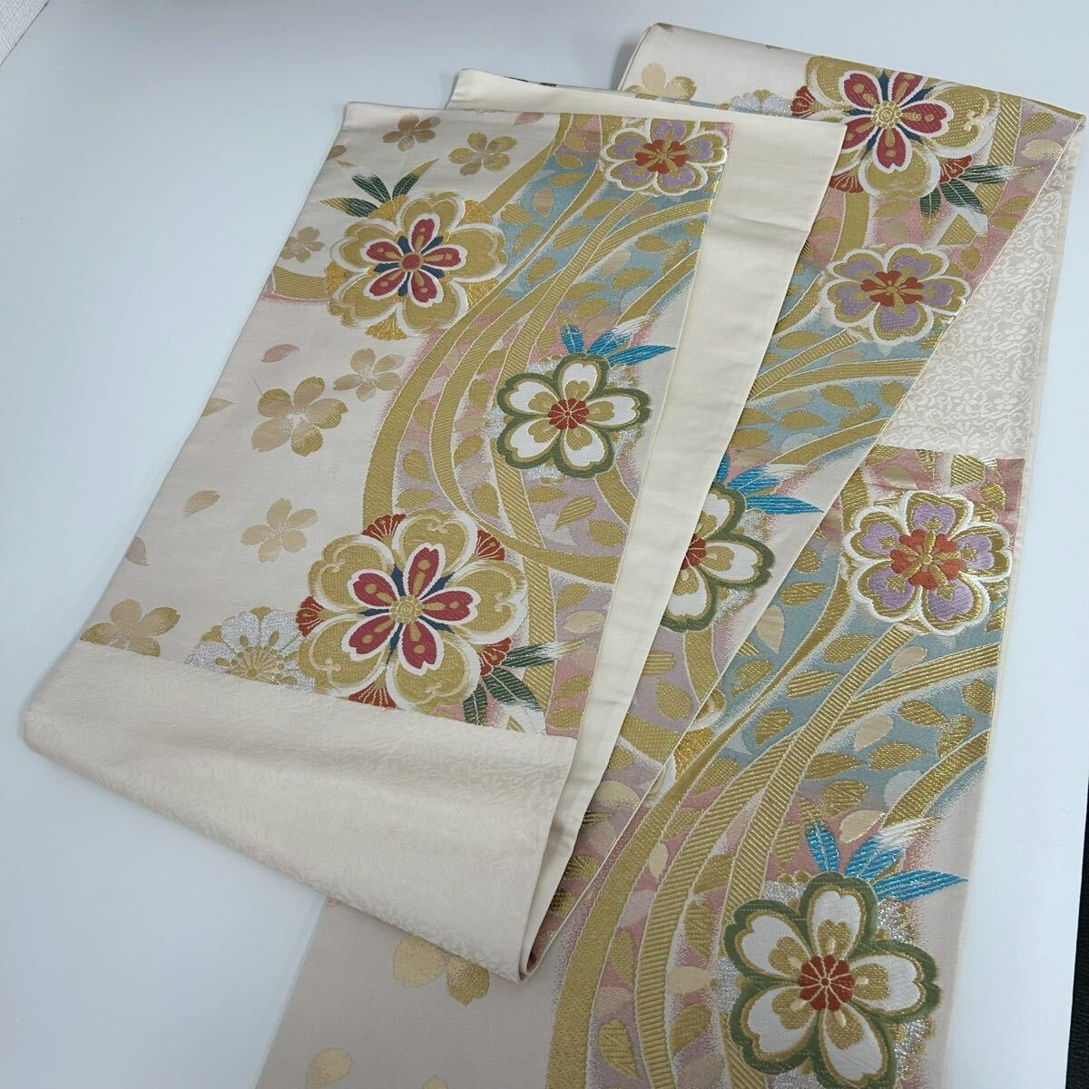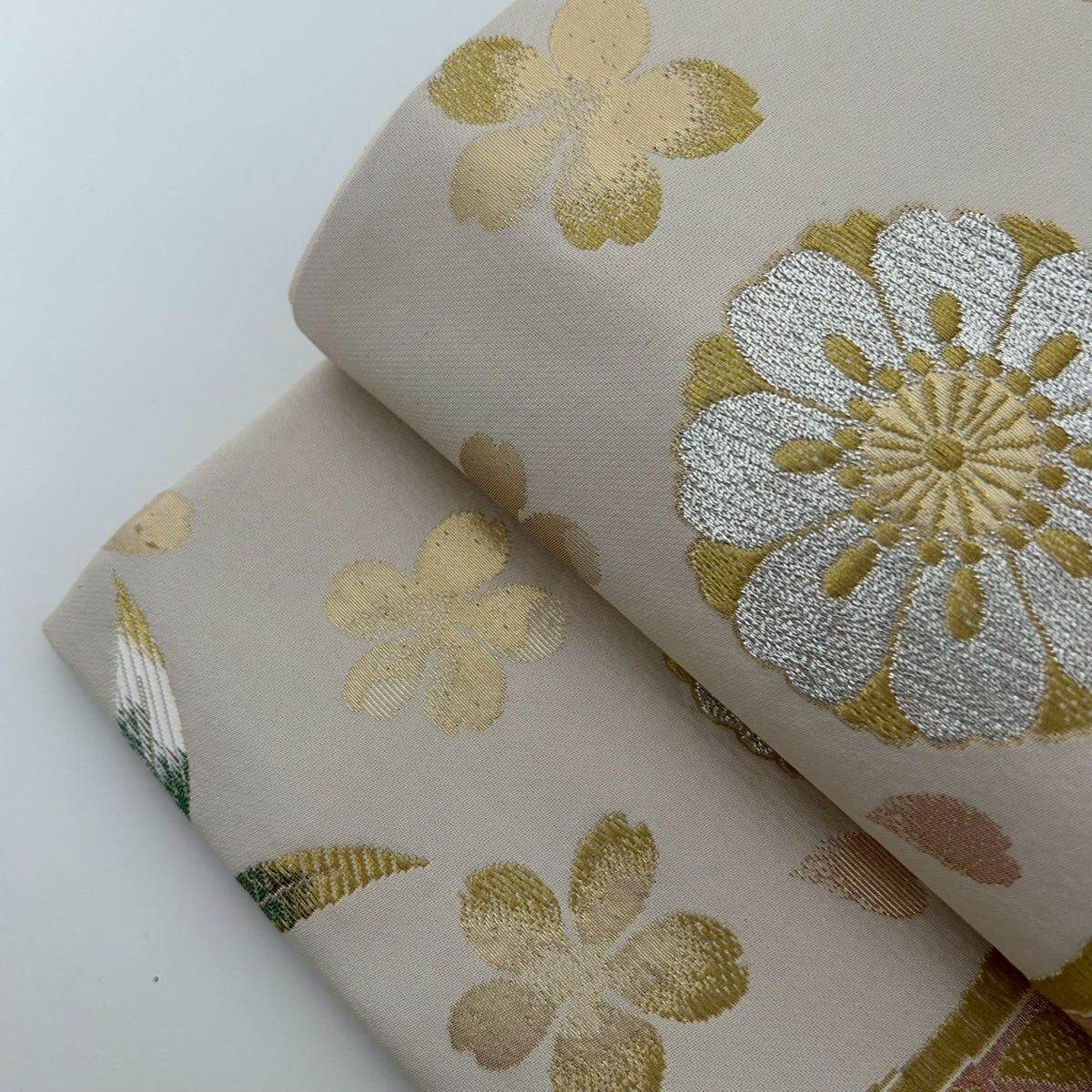 【楓】袋帯 正絹 唐織 曲線 金糸織り込み 花 六通 KK-1206