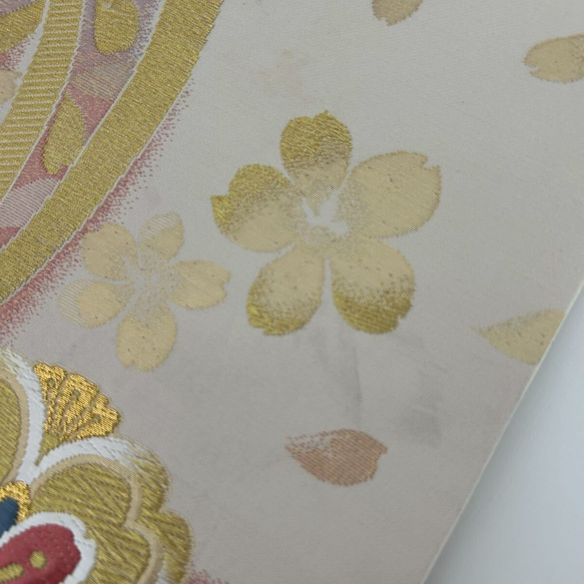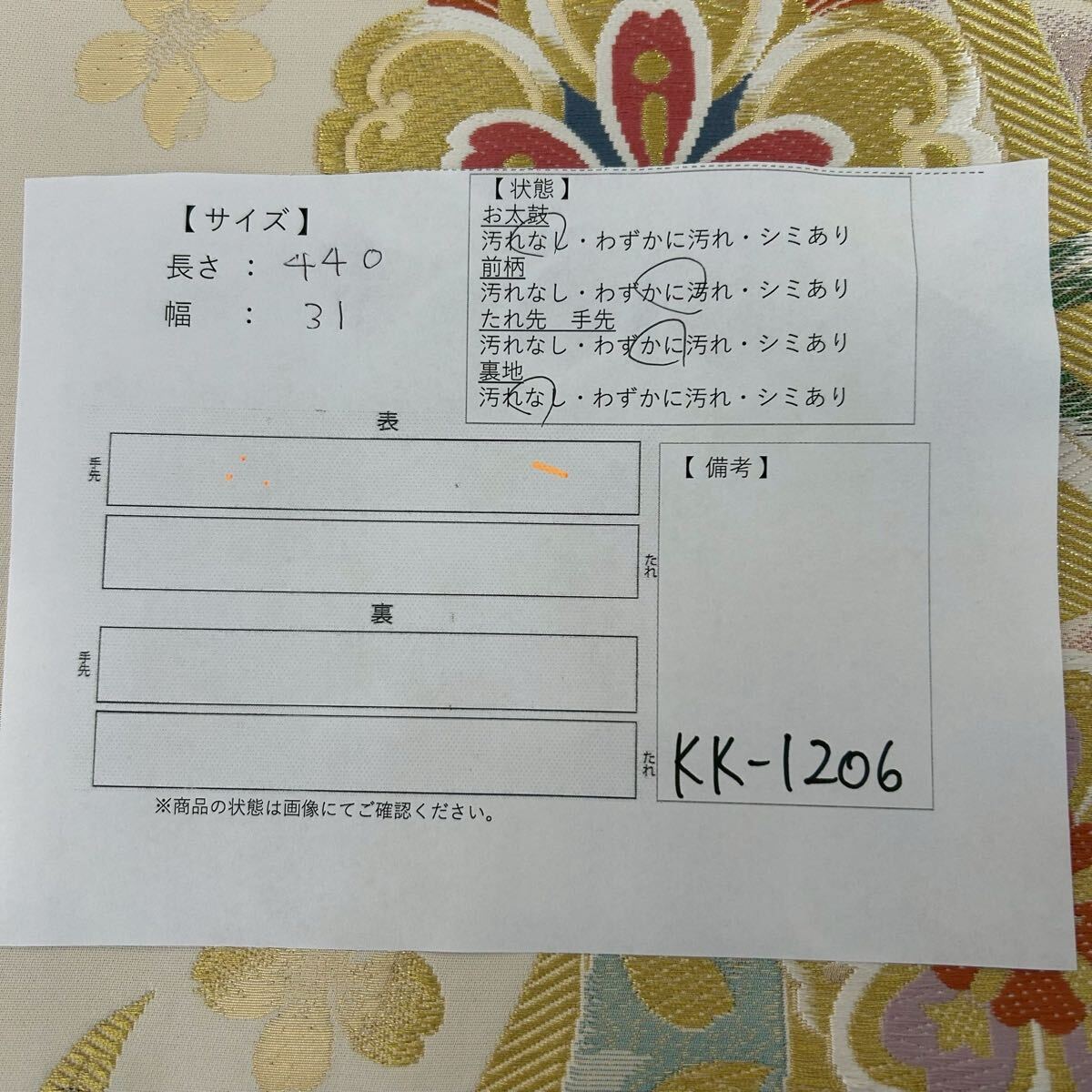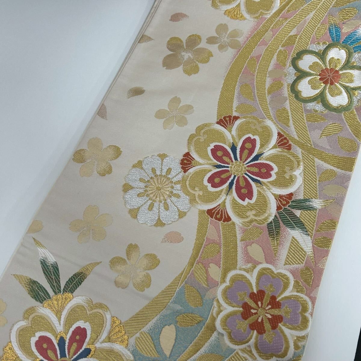 【楓】袋帯 正絹 唐織 曲線 金糸織り込み 花 六通 KK-1206