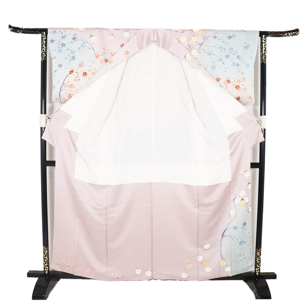 | 商品 | 訪問着 袷 丹後縮緬地 緑(瓶覗色)・赤紫(石竹色)・暈し地 菊・桜・梅 166 広襟 |