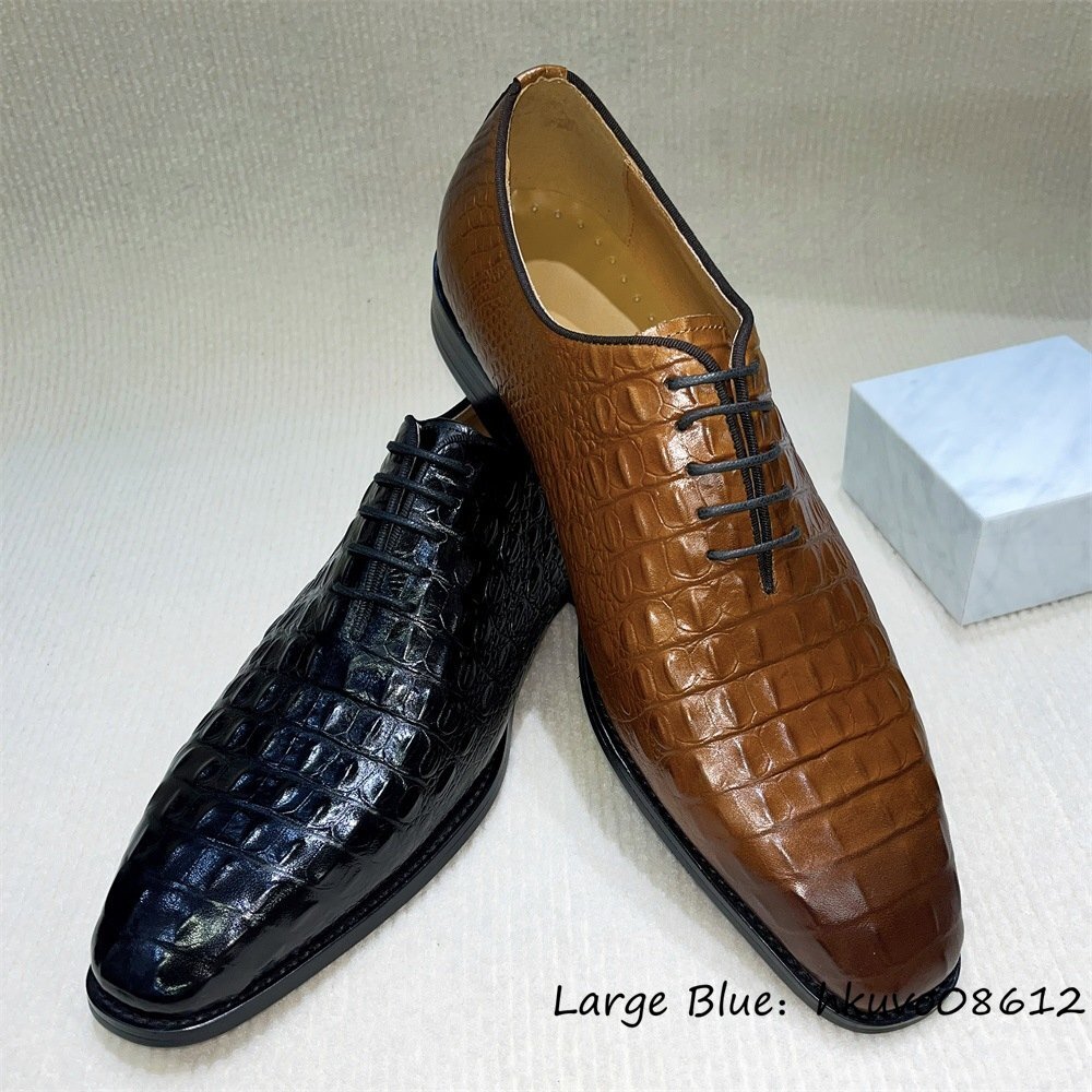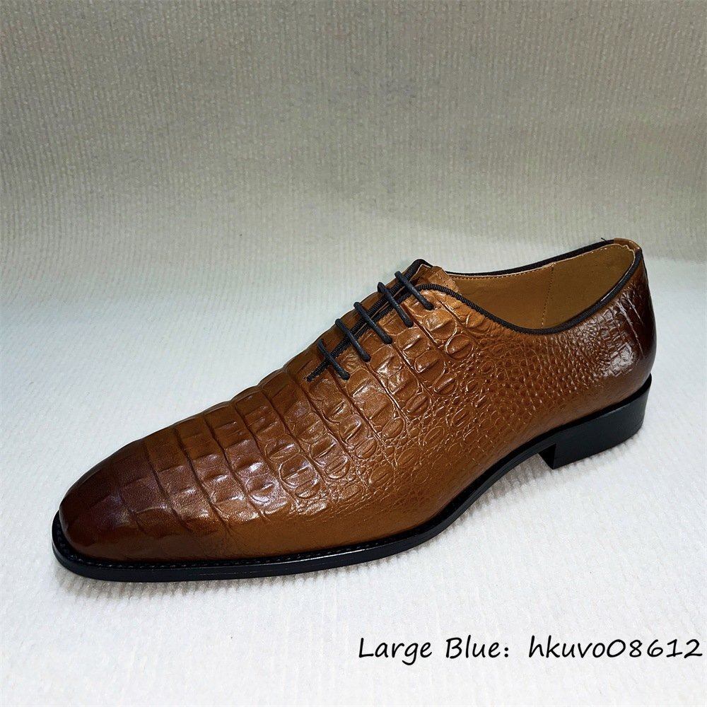 最上級◆定価9万 本革 レザーシューズ 牛革 ビジネスシューズ 紳士 職人手塗仕上げ 鰐柄 ドレスシューズ 革靴 フォーマル ブラウン 24.5cm