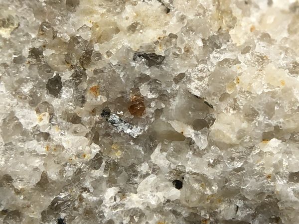 菰野町千草産の鉄礬柘榴石です。アプライト中に赤色の微細な鉄礬柘榴石がわずかに含まれます。