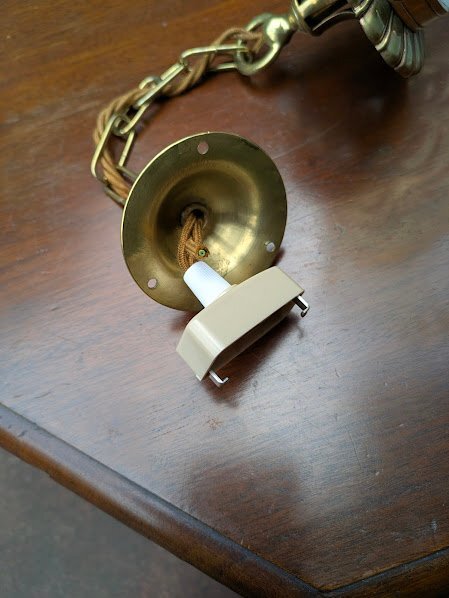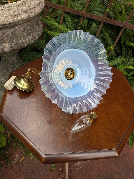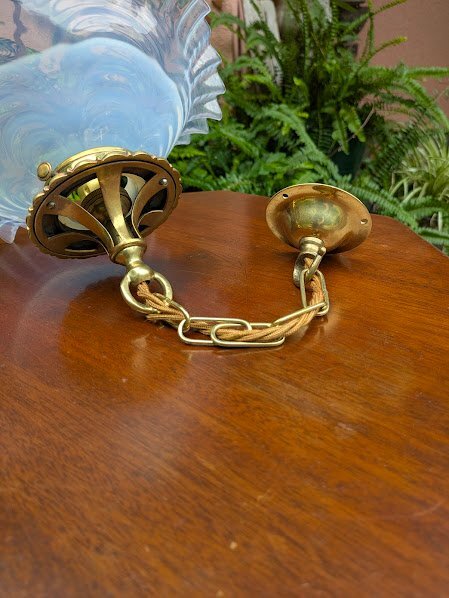 イギリスアンティーク オーパールセントシェード【45-237】真鍮ギャラリー チェーン 天井カバー付き 照明 1920年代