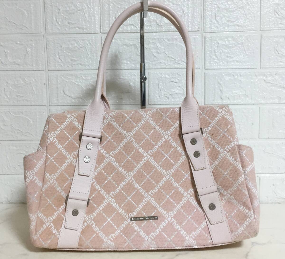 no34218 -G Samantha Thavasa サマンサタバサ レザー キャンバス 肩掛けショルダー ハンド トート バッグ