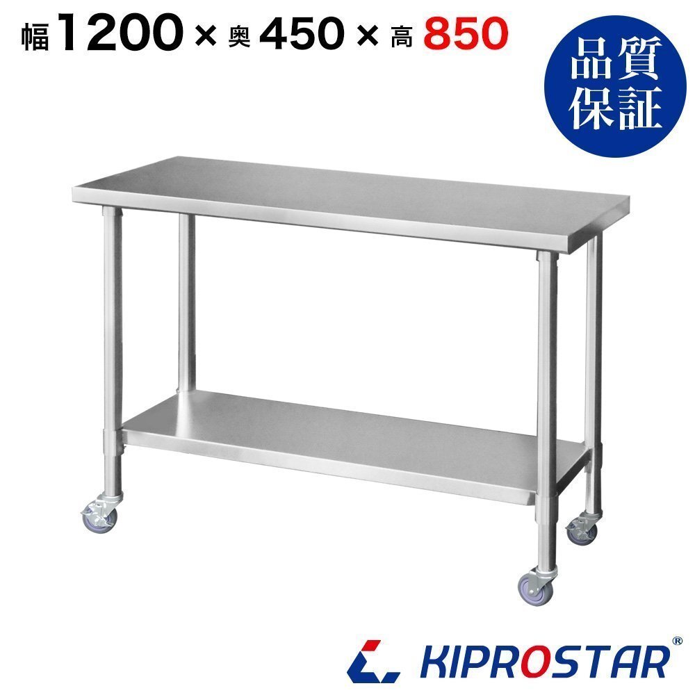 | 即納 業務用ステンレス作業台 キャスター付き 調理台 1200×450×850 板厚1.2mmモデル |