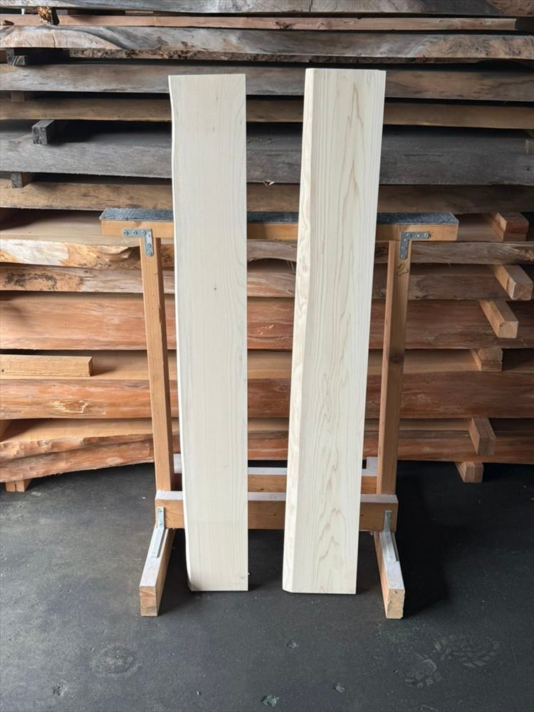 [東濃ひのき板 2枚セット 片耳 節有 幅125cm×奥行15cm×厚み3cm] 無垢板 材料板 木材 板材 東濃檜 荒材 DIY 一枚板 ヒノキ 桧 A-018031025
