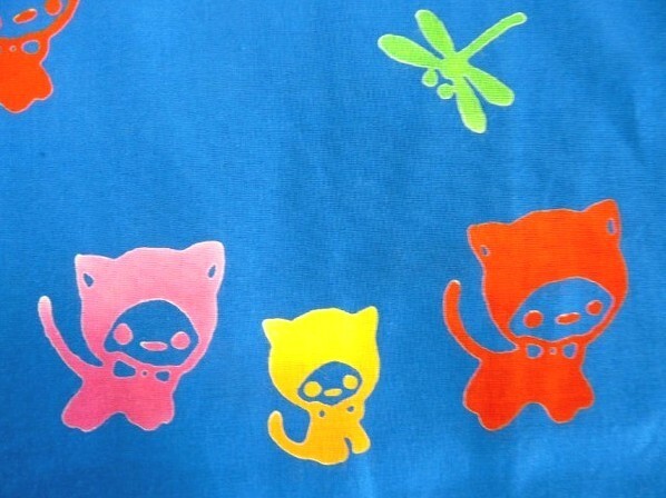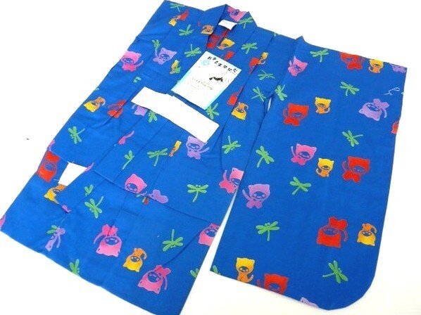 045 新品 子供浴 衣青地にネコ トンボ 110cm