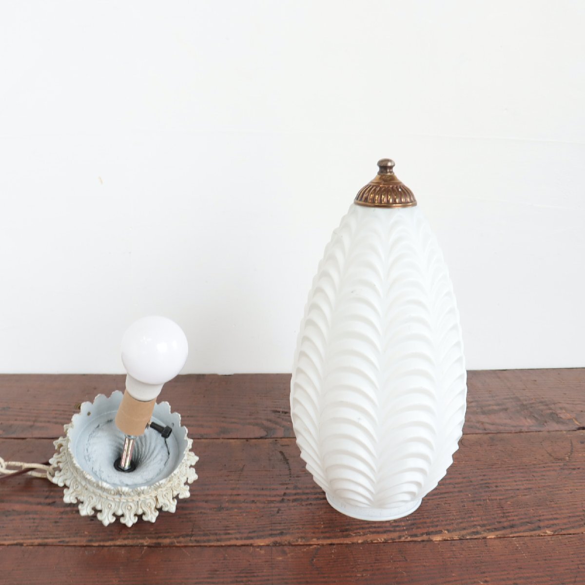 | コンディション condition | ソケット、コード、プラグは新品に交換しています。 小キズ、取れない汚れなど、経年による劣化があります。 詳細は画像をご覧ください。 ※当店は、アンティーク照明器具等を販売するにあたって、電気用品安全法第8条第1項(技術基準適合)を免除する例外承認制度により、経済産業省から承認を受けた事業者です。 技術基準適合に規定する検査と同様の検査を実施しておりますが、PSEマークや電気用品取締法に基づく表示が付されていない電気用品であり、十分な取扱注意が必要です。 ご理解いただいた上で、ご購入いただきますようお願い申し上げます。 |