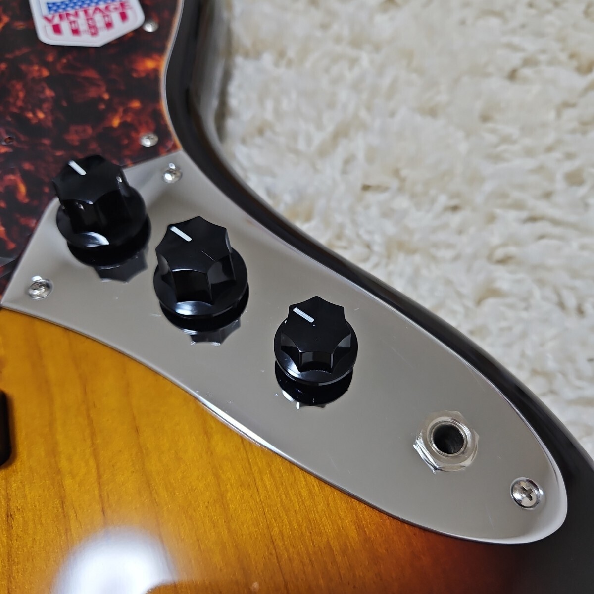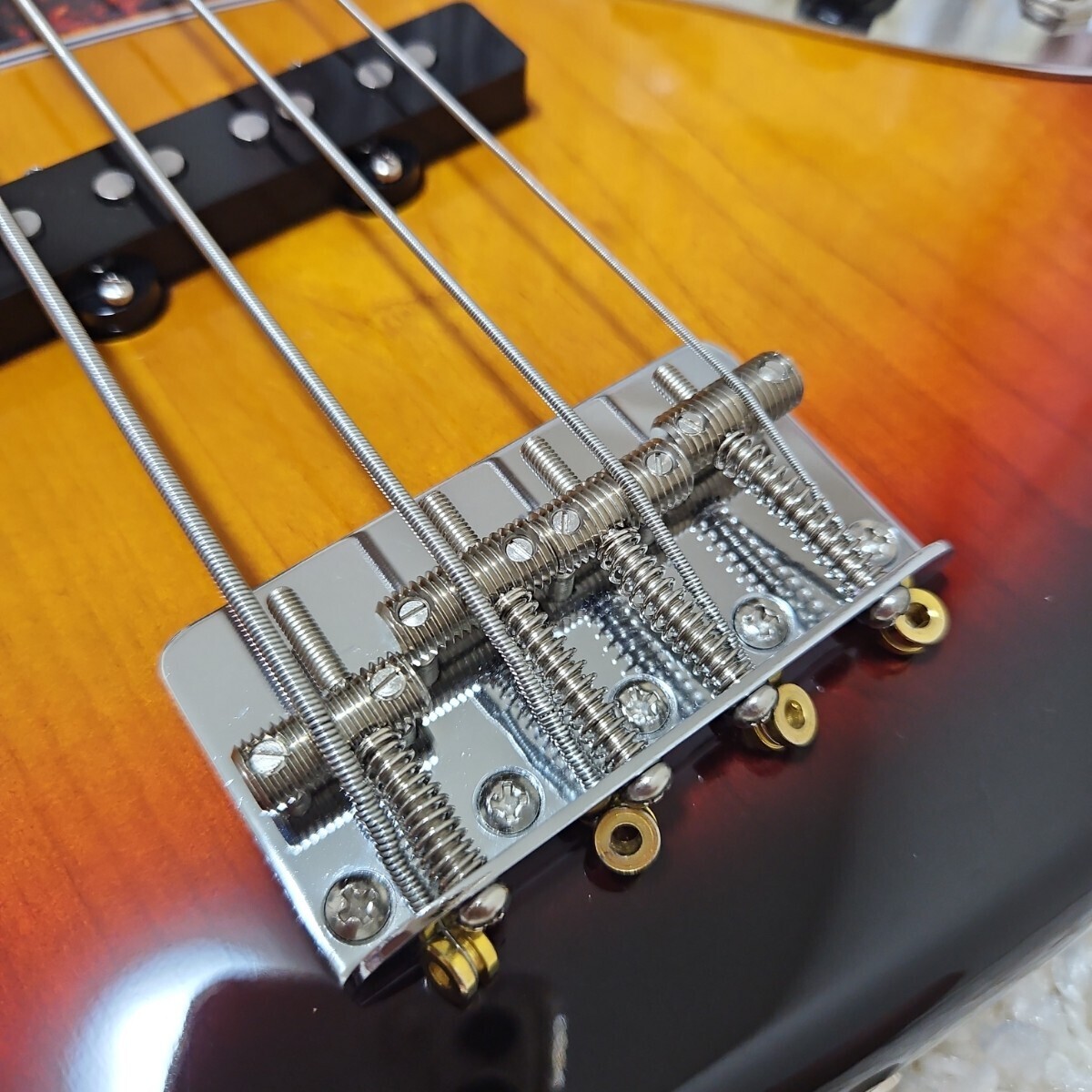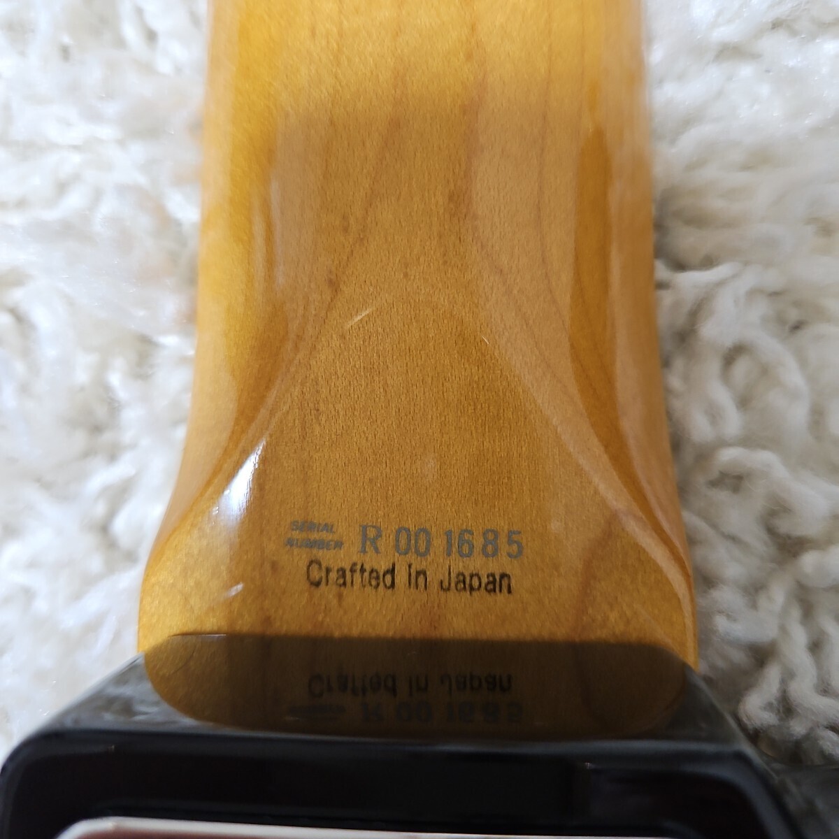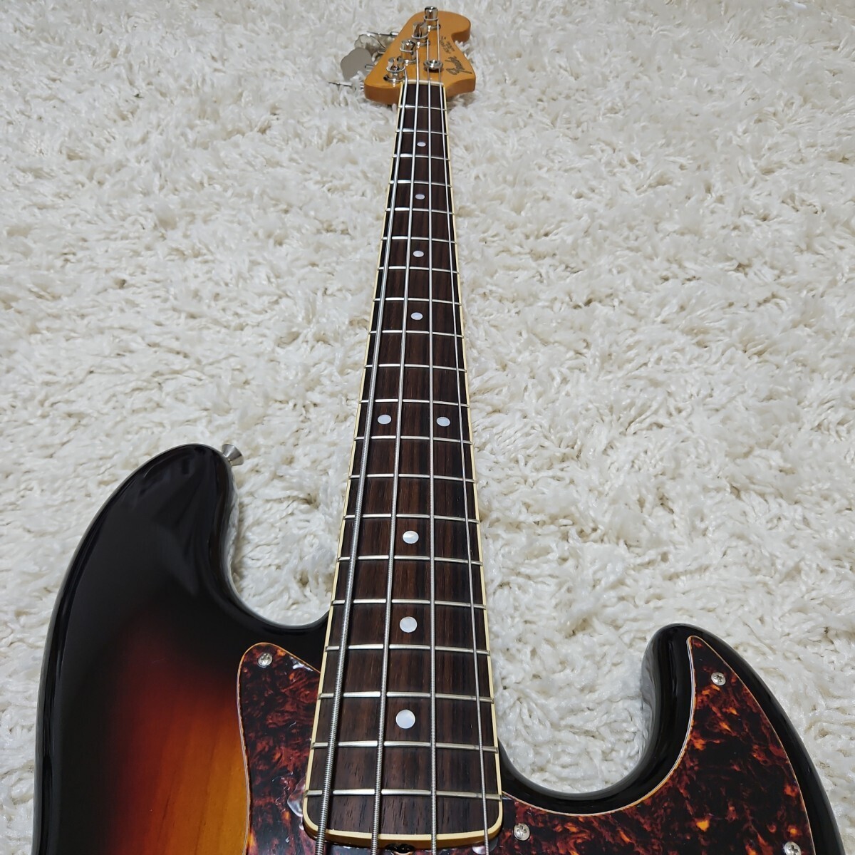 フェンダー社のJB62-75USのFSR仕様で珍しいという事で某ショップにて購入した物になります、結局ほとんど飾っておいただけになりました。フェンダージャパンの時代の物になりますが、詳しくはシリアルナンバーから各自確認をお願い致します。ネックにバインディングが施してあり見た目は40万位するアメリカンビンテージベースに良く似ています、いわなければフェンダーUSAだと思われる位だと思います見た目も音もかなり良いです。元はフェンダージャパン時代の上位機種なのでピックアップはUSAの物を使用しているようです、サウンドも文句はありません。ピックガードにフィルムやシールもまだ貼ったままで、目立った傷もなく美品と言える状態にあると思いますが、あくまでも中古品ですので神経質な方はご遠慮くださいませ。宜しくお願い致します。尚、付属品は純正ギグケースのみとなります、宜しくお願い致します。配送はヤマトを予定しております。