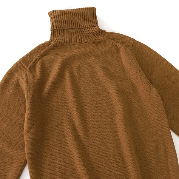 上質な着心地と信頼の品質を兼ね備えた、ザ・ウールマーク・カンパニー認定のウール素材を使用したタートルネックニットです。 オーストラリア産ファインウールを用いた防縮加工糸を採用し、素材開発当初からイタリア技術者と共同で糸質・色・機能性のすべてにこだわり抜いた、世界トップクラスのウールニット糸を使用。 ウール100%のウォッシャブル仕様で、ご家庭でのケアも容易です。 ソフトで温かみのあるウール本来の風合いを大切にしながら、程よい肉感の7ゲージで仕上げることで、極上の着心地を実現しました。 デザインは中肉ながらインナーとしてもすっきり着られるよう、袖回りや裾の設計に工夫を凝らしたタートルネック。 通常はハイゲージに使われる細く光沢感のある糸を多本取りで編み立てることで、なめらかで上品な表情を生み出し、きれいめなスタイルにもマッチする一枚です。 |