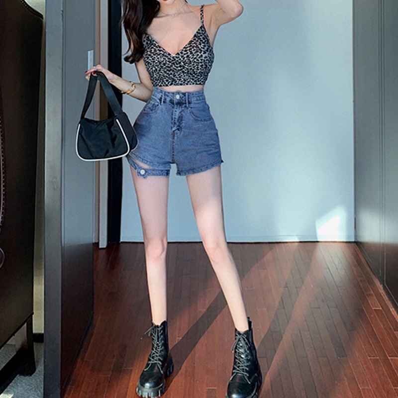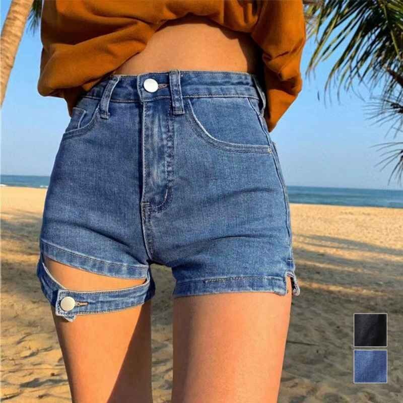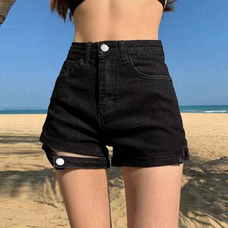 女性らしいシルエットが際立つセクシーなハイウエストデニムショートパンツです。