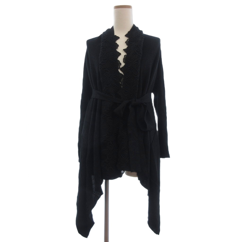 未使用品 アツロウタヤマ ATSURO TAYAMA タグ付き カーディガン ニット ショート丈 レース ラメ 36 黒 ブラック レディース