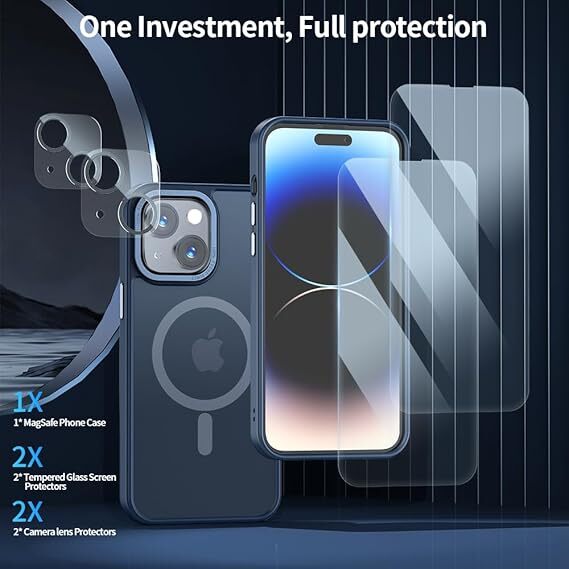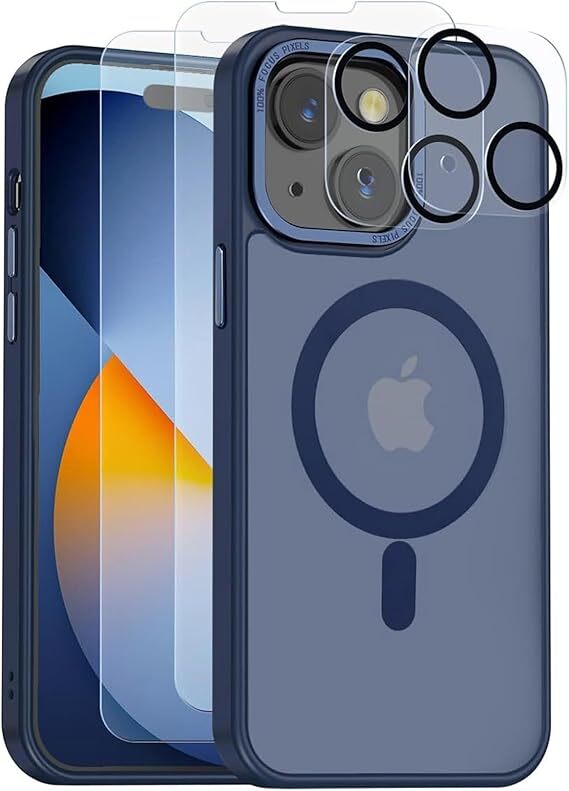 | 15.iPhone 14/14 Pro/14 Plus/14Pro Max ケース MagSafe対応 ミリタリーグレード 耐衝撃保護ケース スクリーンプロテクター 2 枚 + カメラ保護 2 枚付き ブラック (iPhone 14, blue)「完全未開封」 | ||||