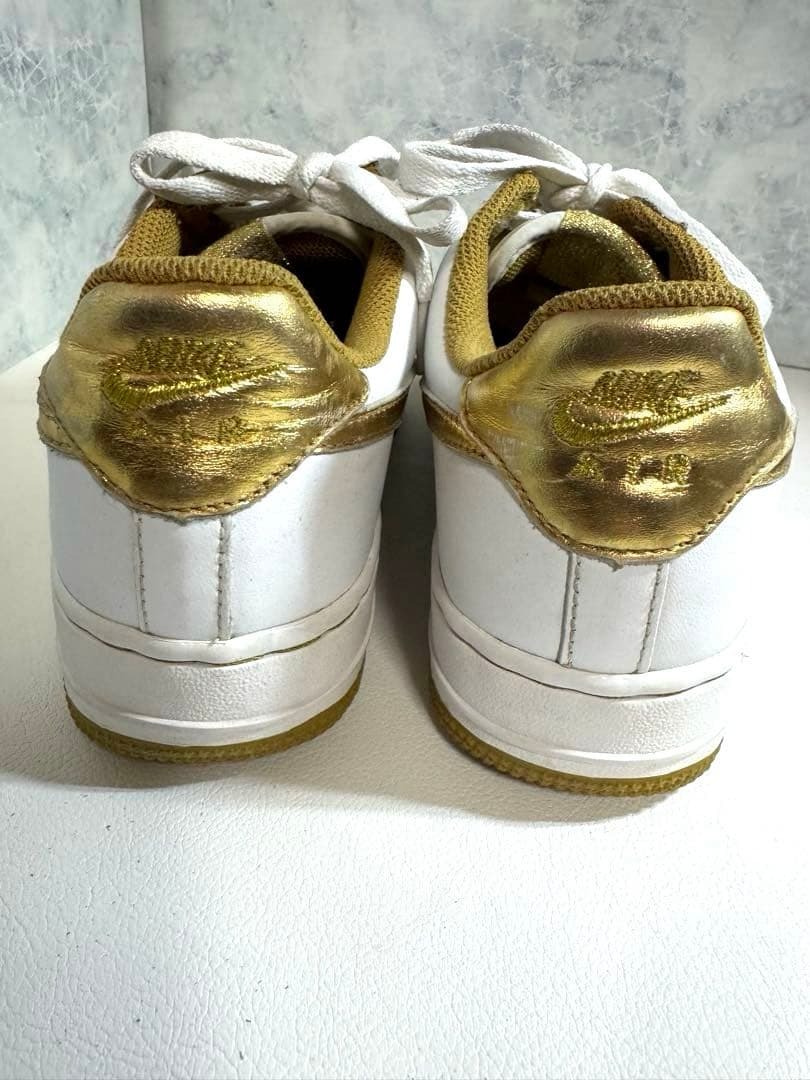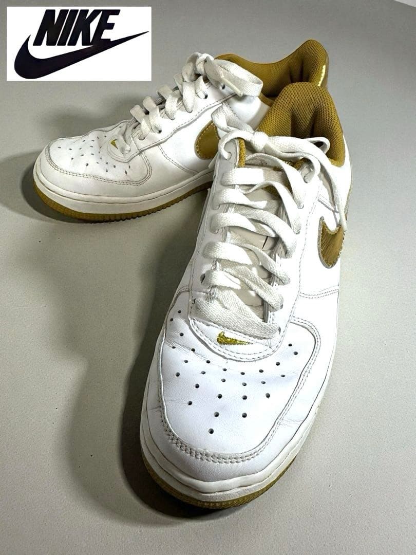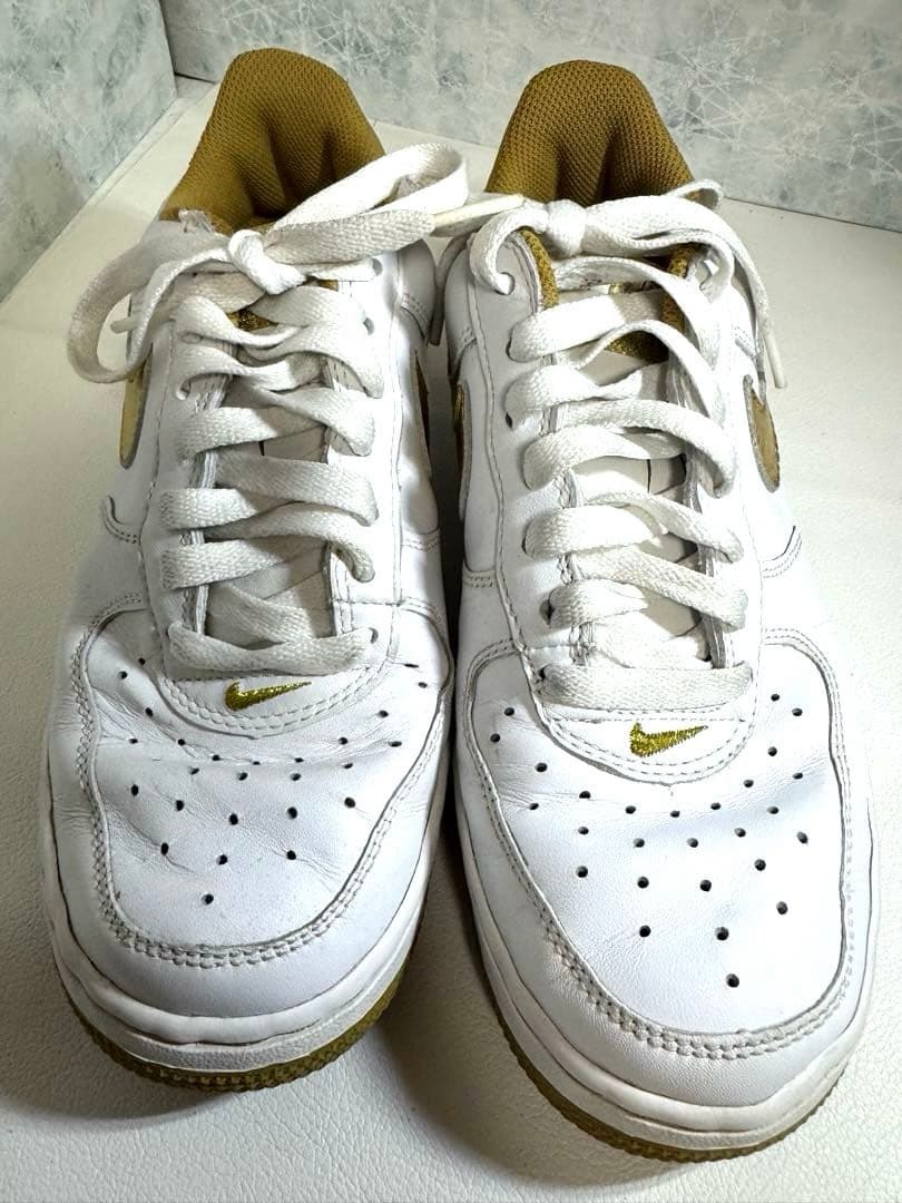 おすすめポイント:定番モデルのAF1。ゴールドのアクセントでコーデの差し色にも◎。箱付きで保管やプレゼントにも向きます(箱はダメージあり)。