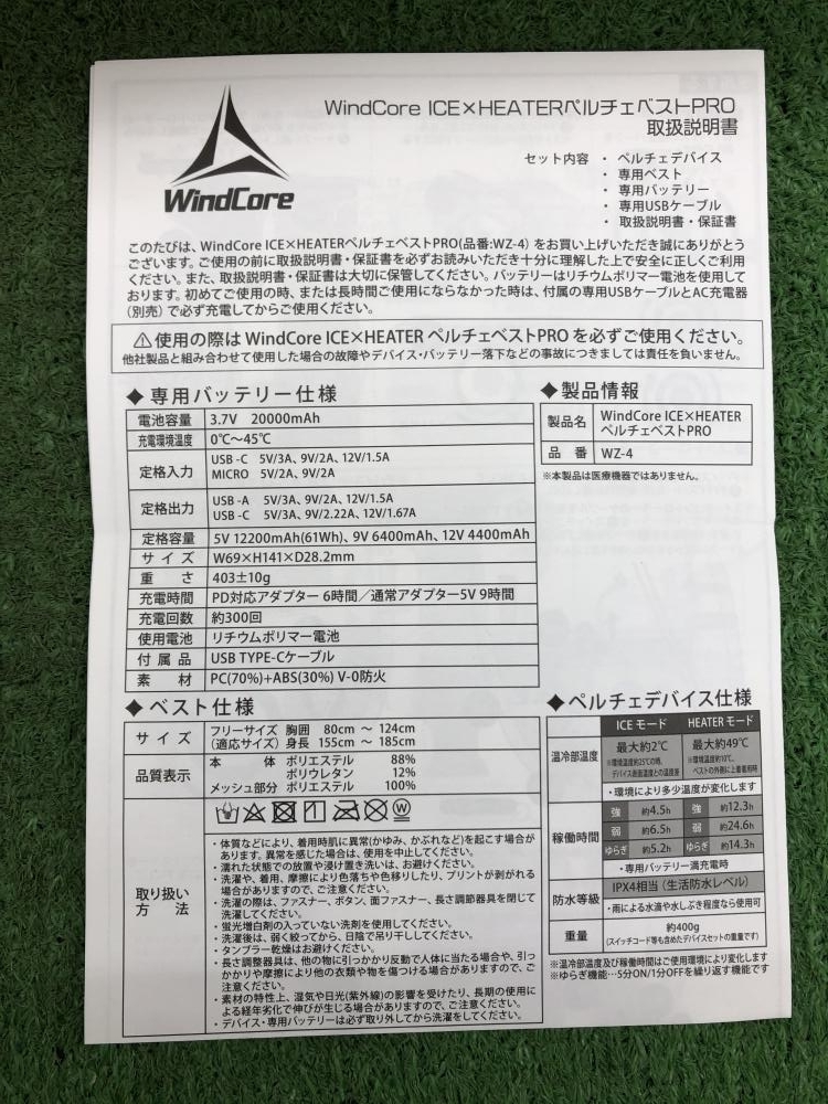 Windcore ウィンドコア ■商品名 ペルチェベスト ■型番 PROmodel |