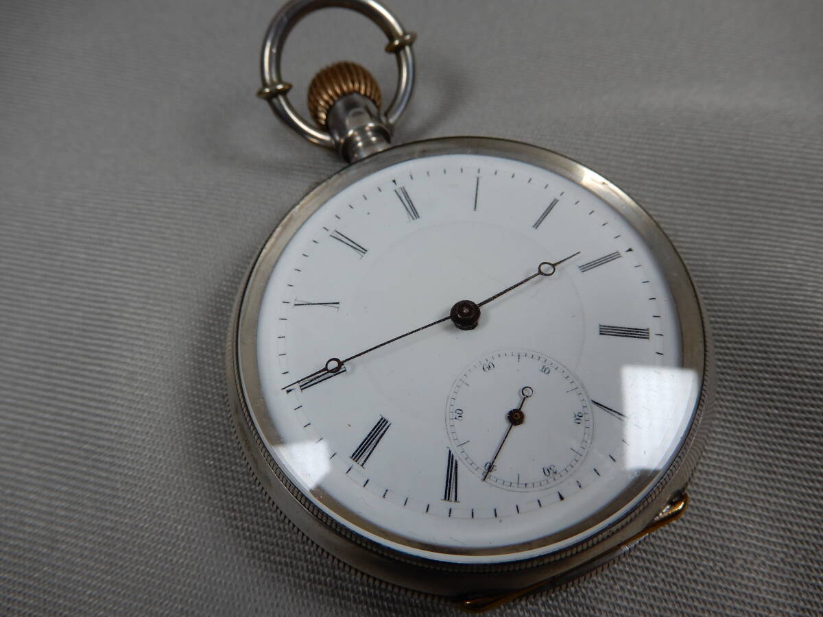 長年収集してきた懐中時計の整理の為の出品です。商館時計と言われる「コロン商会/J.C. & Co 獅子印の懐中時計です。商館時計では初期に使われていたブレゲ針が付いています。