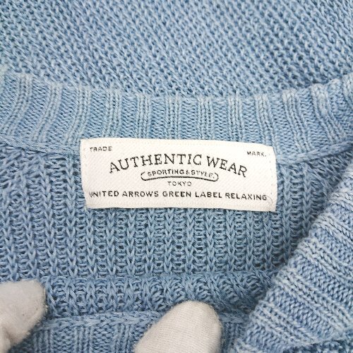 ◇ ⊂ UNITED ARROWS メッシュニット ミドルゲージ 長袖 ニット サイズL サックスブルー レディース E