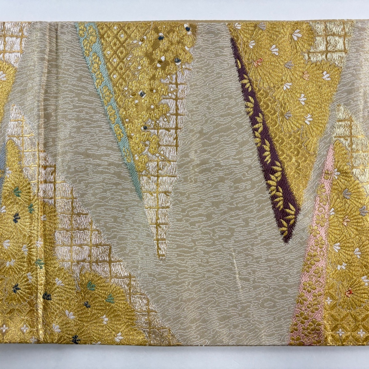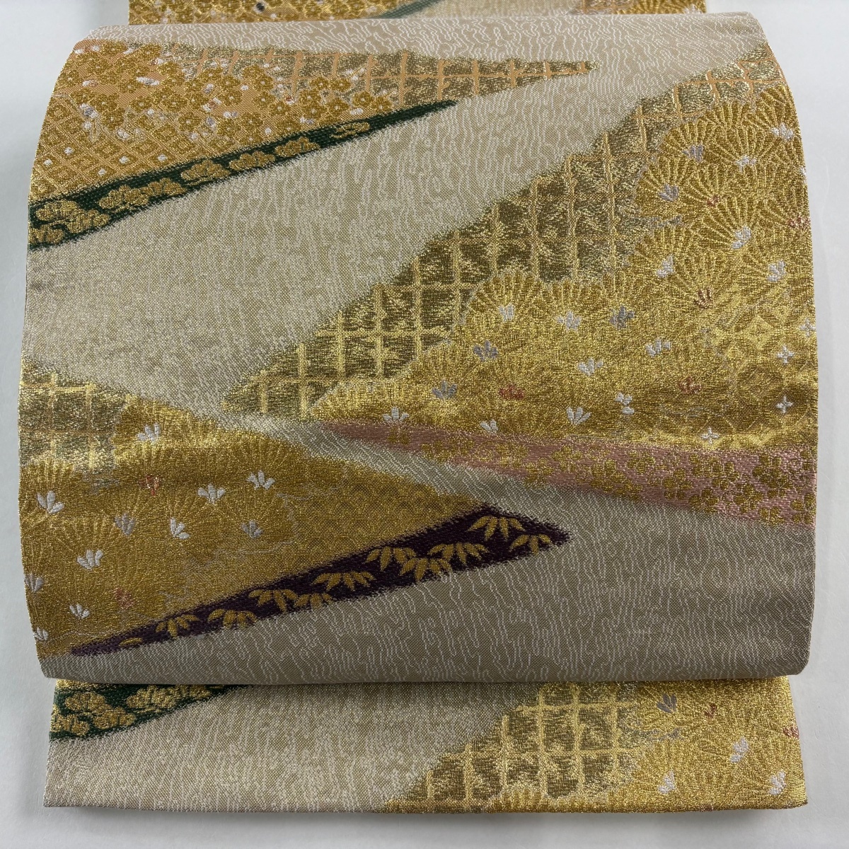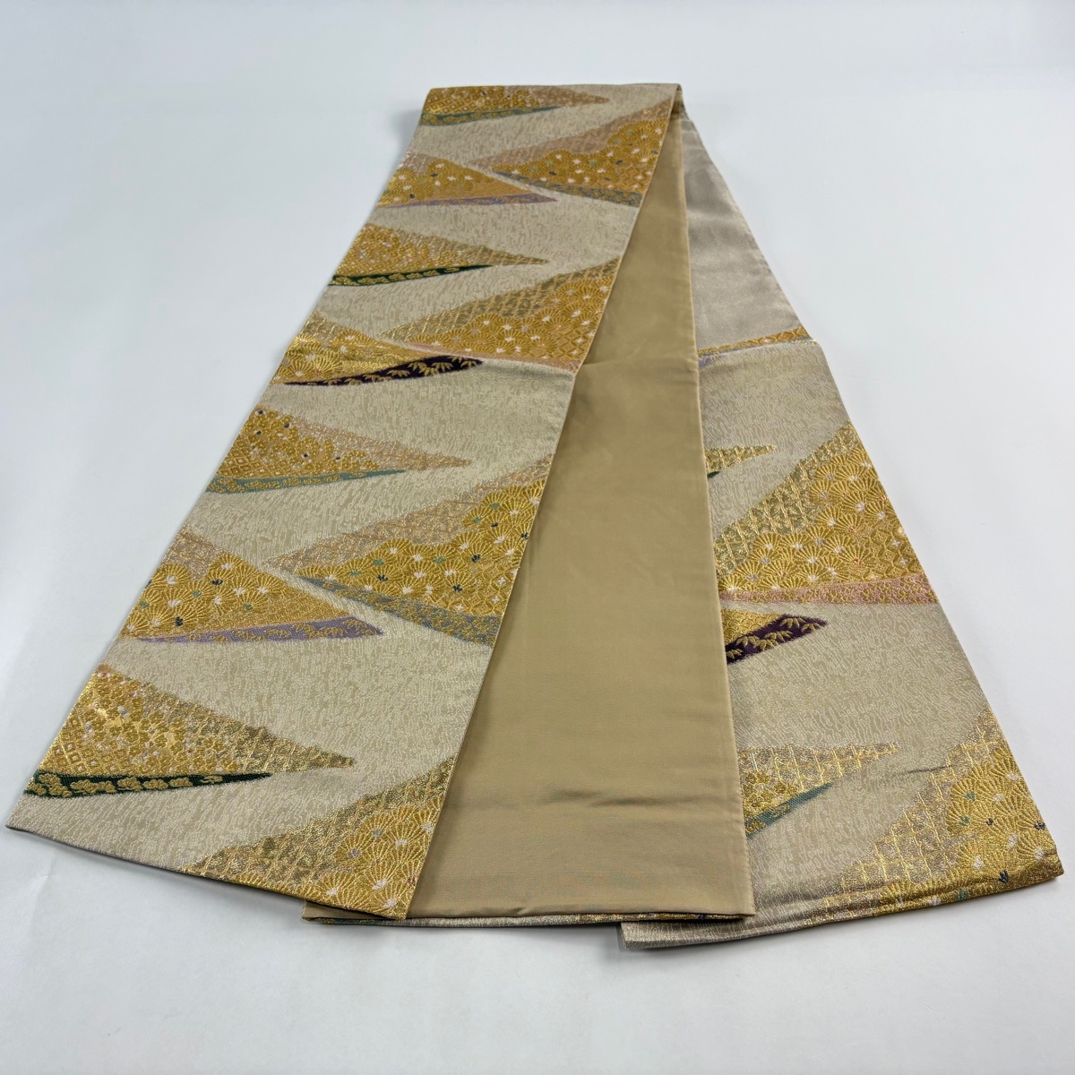 | 袋帯 美品 秀品 松竹梅 若松 箔 金銀糸 ベージュ 六通 正絹 【中古】 |