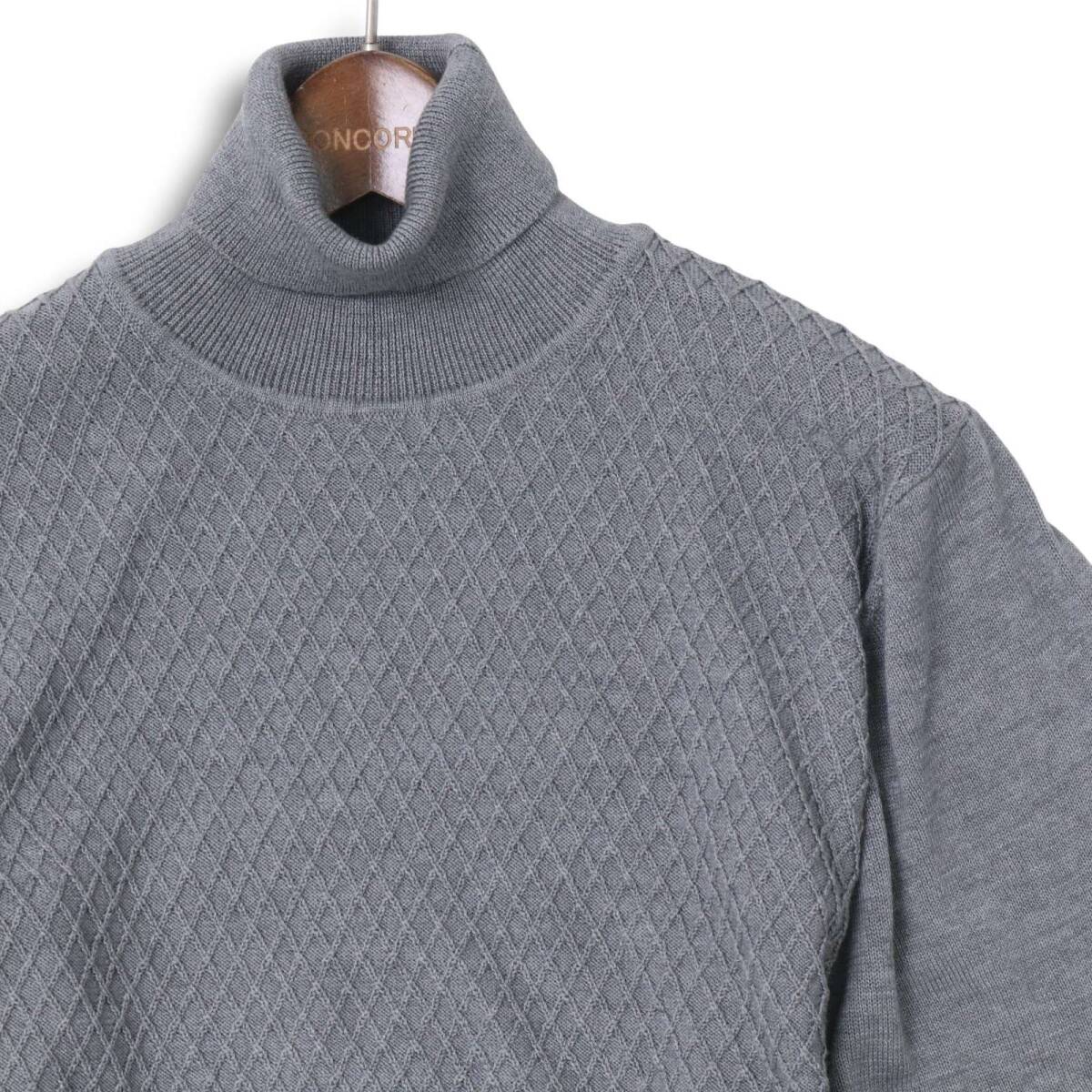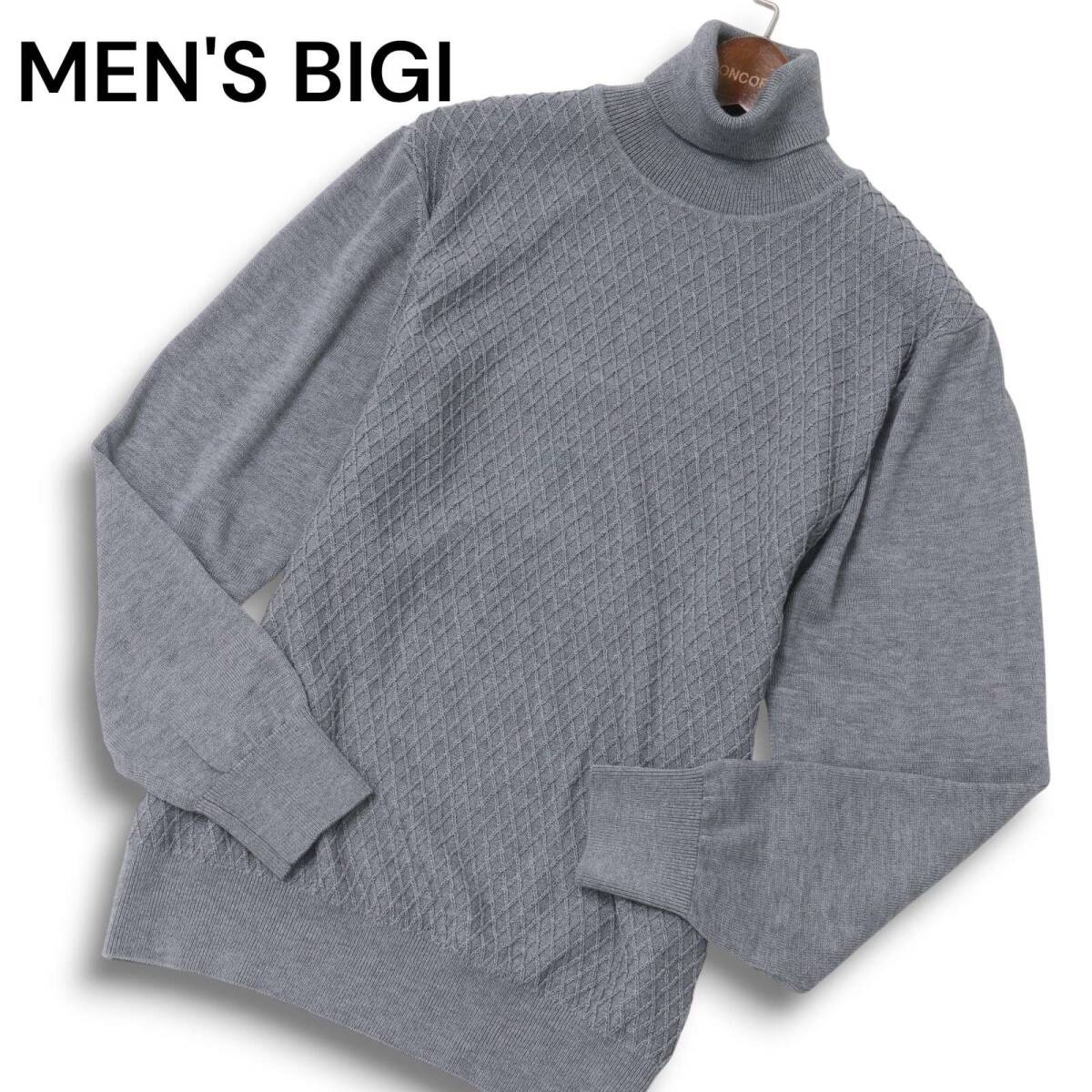 24AW★ MEN'S BIGI メンズビギ ウール混 12G ジャカード ウォッシャブル タートルネック ニット セーター Sz.2 メンズ 灰