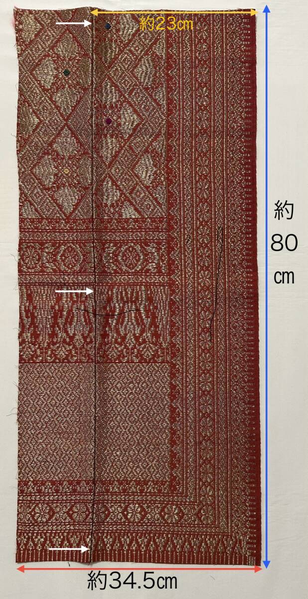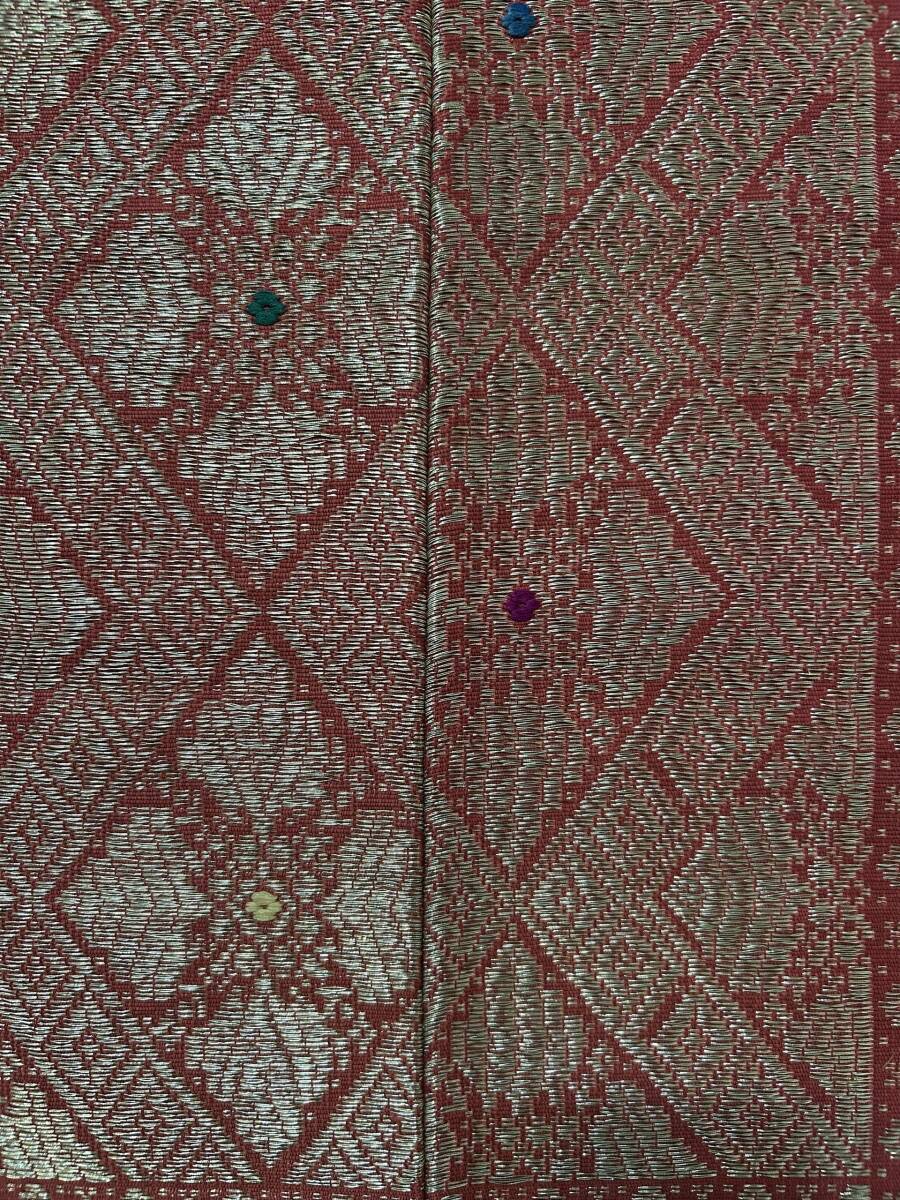 はぎれですが、これほどの仕事がなされているオリジナルの金糸ソンケットは貴重です。この裂を活かしてくださる方がいらっしゃいましたら、よろしくお願いいたします。
