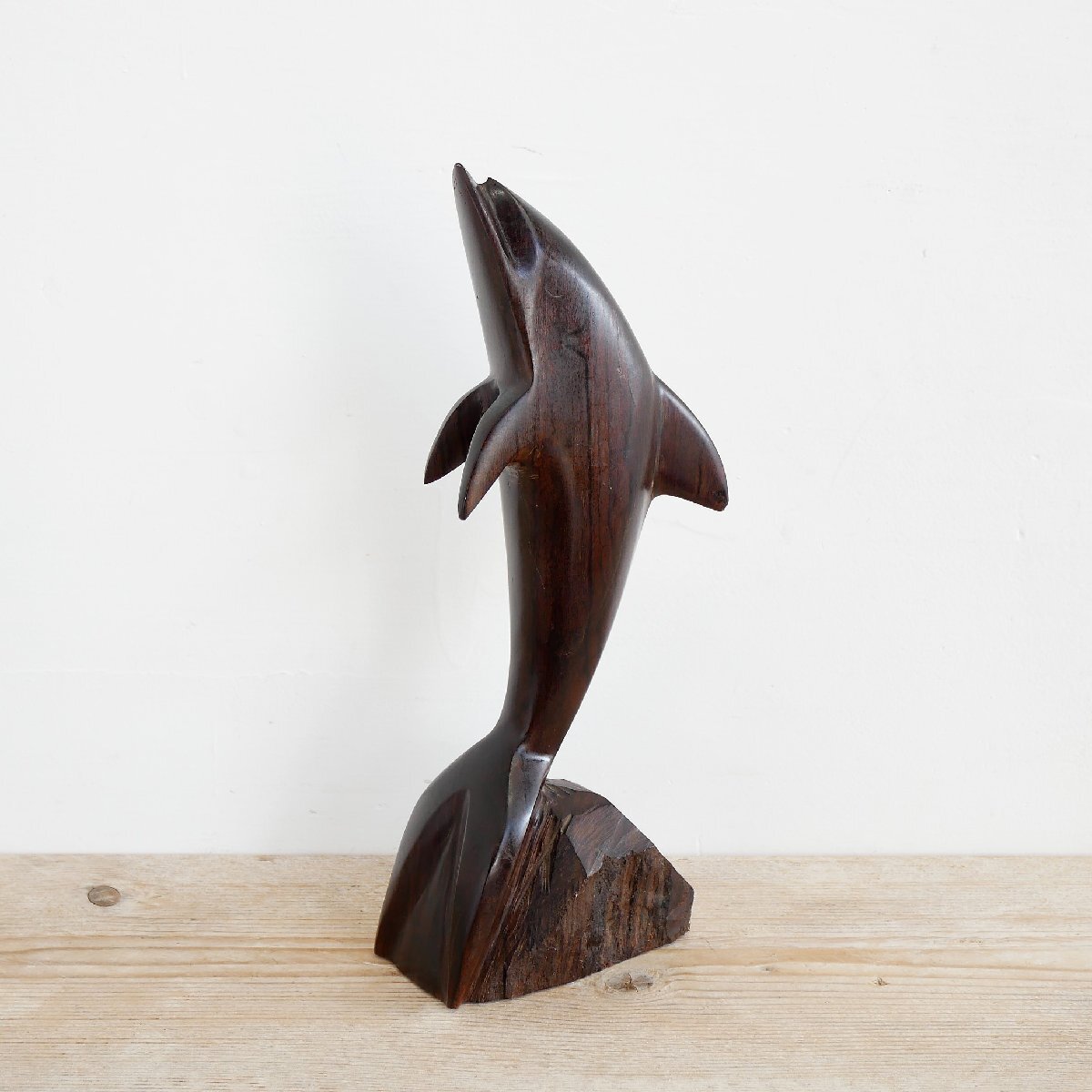 | 商品説明 explanation | イるかを模した黒檀の木彫りの置物です。 ※黒檀は「かきのき科」の高くて光沢がある美しい材木です。 リアルな表現でフォルムが美しく、とてもいい雰囲気です。 インテリア小物にいかがでしょうか。 |