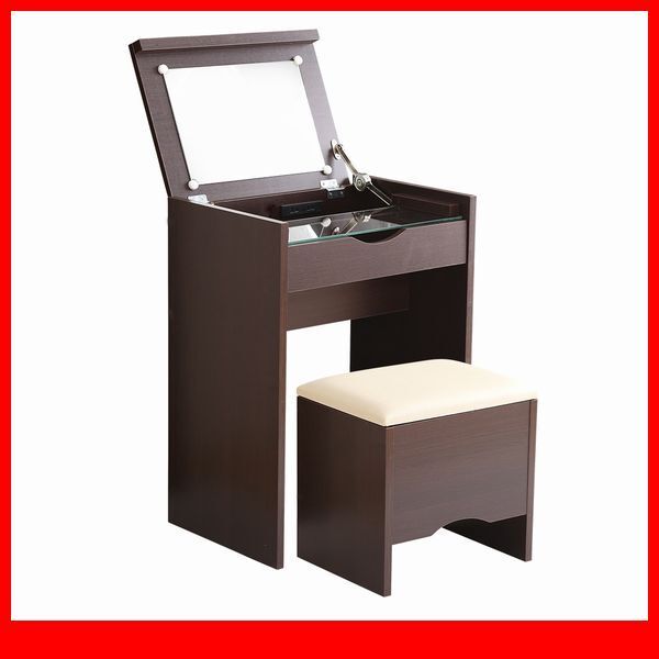 ドレッサー★コンパクト収納ドレッサー 収納スツール 2点セット/天板を閉じてデスクに/ガラストップ コンセント付き/ダークブラウン/a4