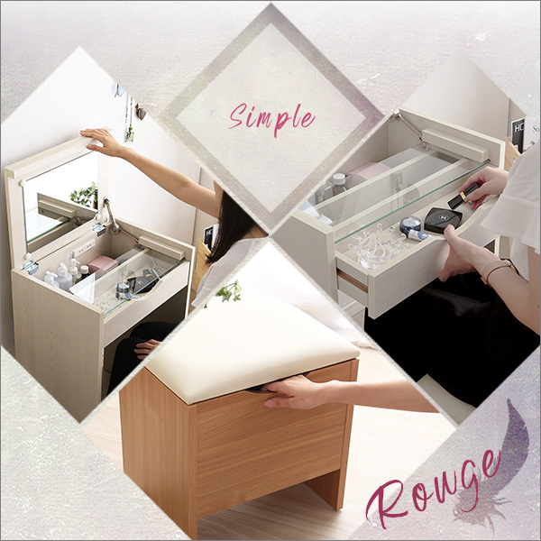 コンパクト収納ドレッサー スツール 2点セット コンセント付き