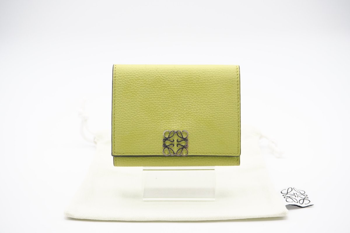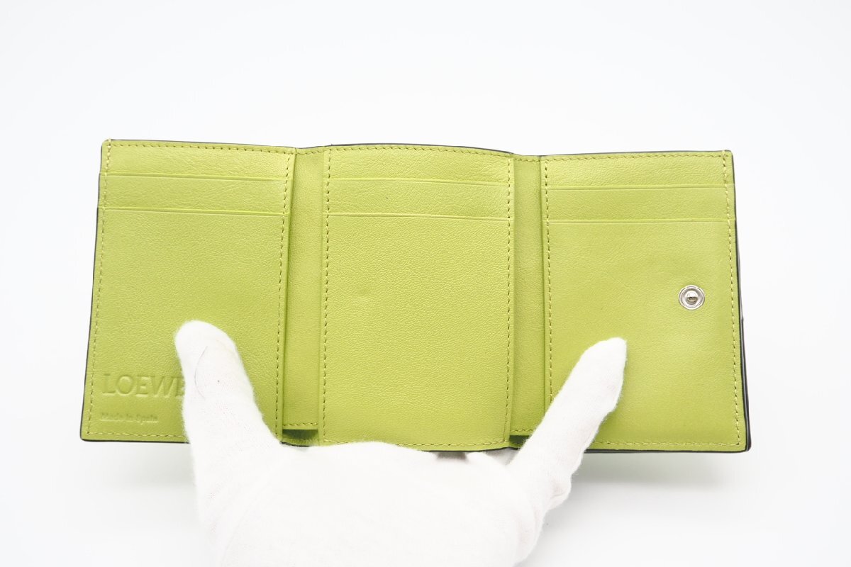 ★3日以内返品可★ LOEWE ロエベ C821TR2X02 ペブルグレインカーフ アナグラム トライフォールド ウォレット グリーン 財布