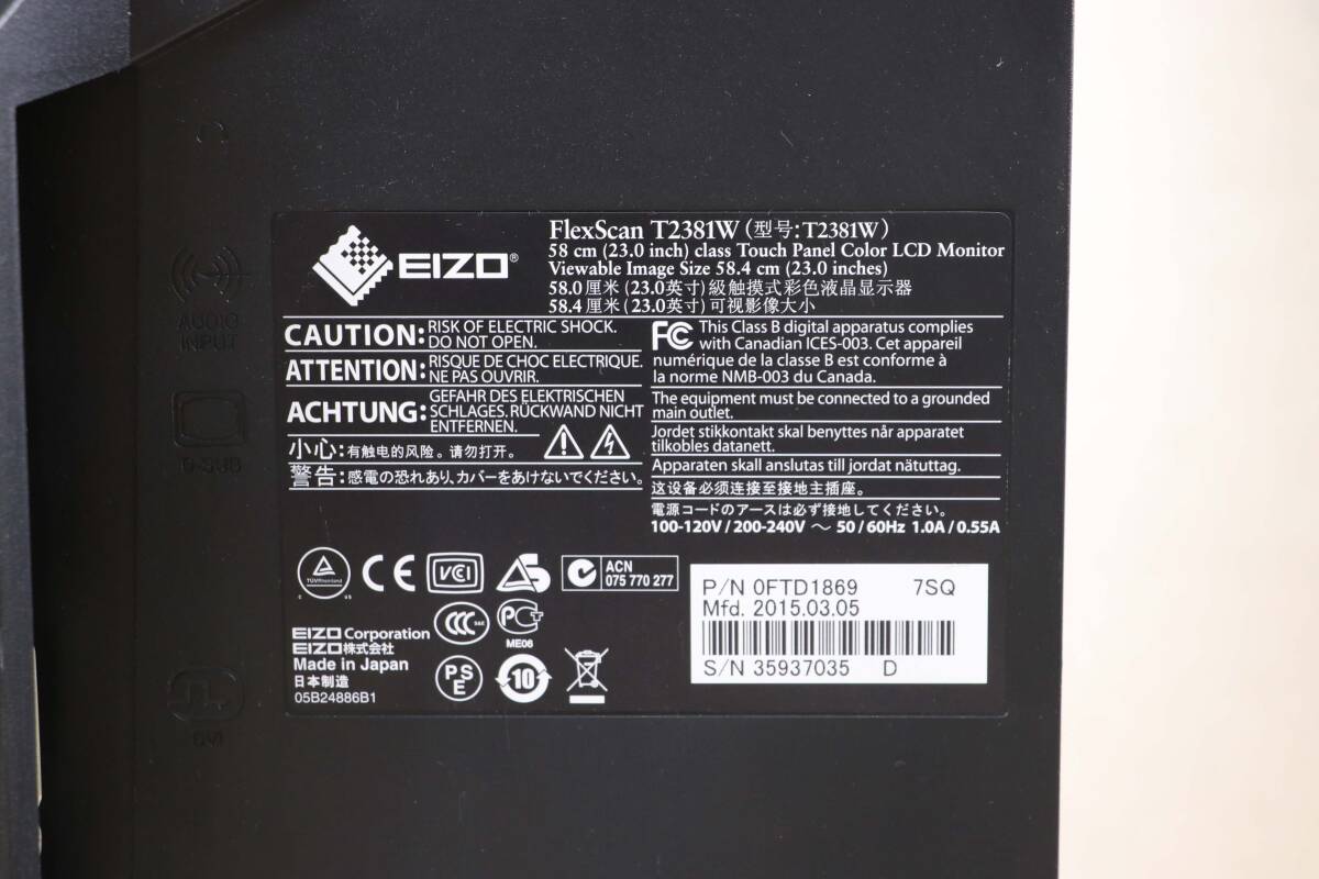 ジャンク!6860 EIZO 23型ワイド T2381W タッチパネル フルHD DP端子 スピーカー内蔵 ディスプレイ