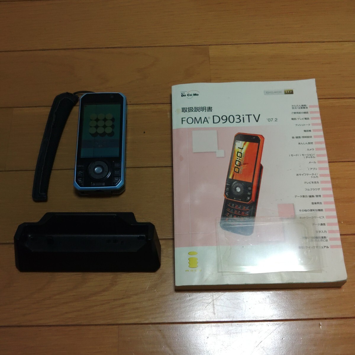 携帯電話本体(バッテリー付き)(ストラップ内にテレビアンテナ入ってます)専用充電機台、取説の出品です。